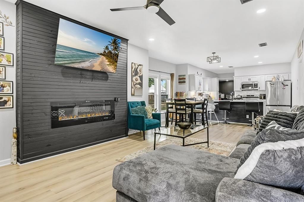 Beautifully remodeled 3-bedroom, 2-bath home situated on a spacious corner lot! This move-in ready property features a stunning living room with an electric fireplace set into a custom wood accent wall, creating a warm and modern focal point. Enjoy the flexibility of a large second living area—perfect for a family room, office, or entertainment space.The primary suite offers a spa-like retreat with double sinks and a gorgeous tiled walk-in shower. Throughout the home, you’ll find luxury vinyl plank flooring, stylish quartz countertops, stainless steel appliances, and elegant under-cabinet lighting in the kitchen.Step outside to an inviting front porch, ideal for relaxing in rocking chairs and enjoying the neighborhood charm. This home combines thoughtful design, modern finishes, and comfortable living—ready for you to make it your own!Don't miss this one call your agent and come see your new home!