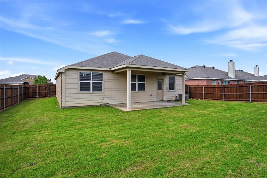 This beautiful home in rapidly growing Anna, TX offers the rare advantage of no HOA and a prime location near Highway 75 and 121, giving you quick access to shopping, dining, and everyday conveniences. Walmart, Home Depot, and a variety of restaurants are just minutes away, while the new HEB and popular Buc-ee’s are only about a 15-minute drive. Featuring 3 bedrooms, 2 bathrooms, and a 2-car garage, this home is designed to impress. Step inside to find ceramic tile flooring in the entry, kitchen, and bathrooms, along with recently installed carpet in the living area and bedrooms for a fresh, comfortable feel. The thoughtfully designed split-bedroom layout provides privacy, with a spacious primary suite that includes a separate shower, garden tub, and a generous walk-in closet. The secondary bathroom is well-sized and includes a convenient linen closet for extra storage. The open concept kitchen is both functional and stylish, showcasing granite countertops, a center island for additional workspace, pantry, and a built-in microwave. Cabinet hardware has already been added, an upgrade not commonly found in this area, giving the space a more custom, finished look. A breakfast bar and dedicated eating area make it perfect for everyday living and entertaining. Additional features include ceiling fans, updated modern light fixtures throughout the home and a sprinkler system. Step outside to enjoy an oversized covered patio and a newly installed wood fence, creating the perfect outdoor space for relaxing or entertaining year-round.