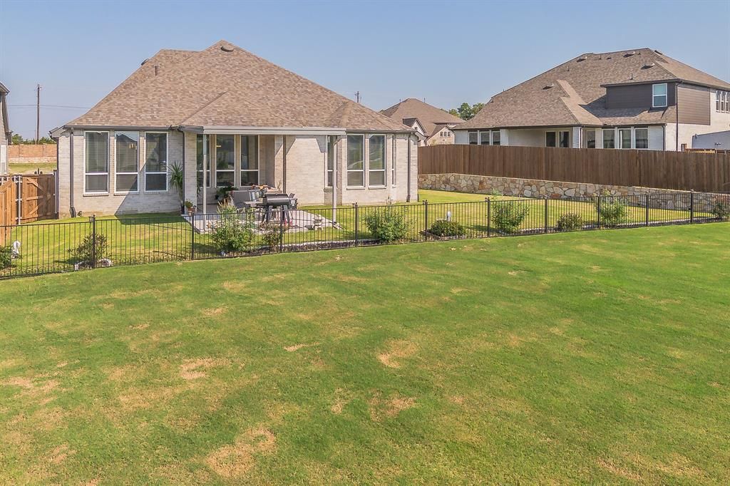 Step into this practically brand new home, perfectly situated on a peaceful greenbelt in the highly sought after master planned Devonshire community. With its thoughtful layout and modern features, this home offers the ideal blend of comfort, functionality, and style. Inside, you will find an open concept floor plan designed for everyday living and entertaining. The spacious living area flows seamlessly into the dining space and gourmet kitchen that features upgraded granite countertops that will be a conversation piece. One of the standout features is the junior primary suite with its own en suite bathroom, providing a private retreat for guests, multi generational living, or anyone seeking extra comfort. The additional bedrooms are generously sized, offering flexibility for a craft room or even a playroom. Outside, enjoy serene greenbelt views with no immediate backyard neighbors, your own private backdrop for morning coffee or evening relaxation.Living in Devonshire means access to resort style amenities, including pools, walking trails, playgrounds, and community events, all while being just minutes from shopping, dining, and top rated schools. This home is truly move in ready and waiting for its next chapter make it yours today!