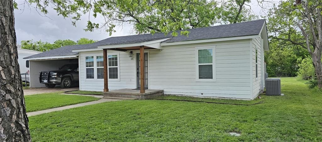 Completely remodeled in 2024, this charming farmhouse sits on a spacious double lot shaded by mature trees. Taken down to the studs during the 2024 remodel, updates at that time included all new electrical, plumbing, windows, central HVAC, and roof offering peace of mind with modern systems throughout. Inside, you’ll find a bright open concept layout connecting the living, kitchen, and dining areas, finished with stylish updates and appliances. This 2 bedroom, 1 bath home blends classic character with contemporary design, creating a comfortable and inviting space. The oversized backyard offers endless possibilities for all your ideas or simply space to enjoy the outdoors. Conveniently located just a couple blocks from the middle of town, this property delivers the best of small town living with everyday convenience. Located approx 45 mins from Abilene and about 35 Mins from Brownwood. Move in ready come see all this one has to offer.