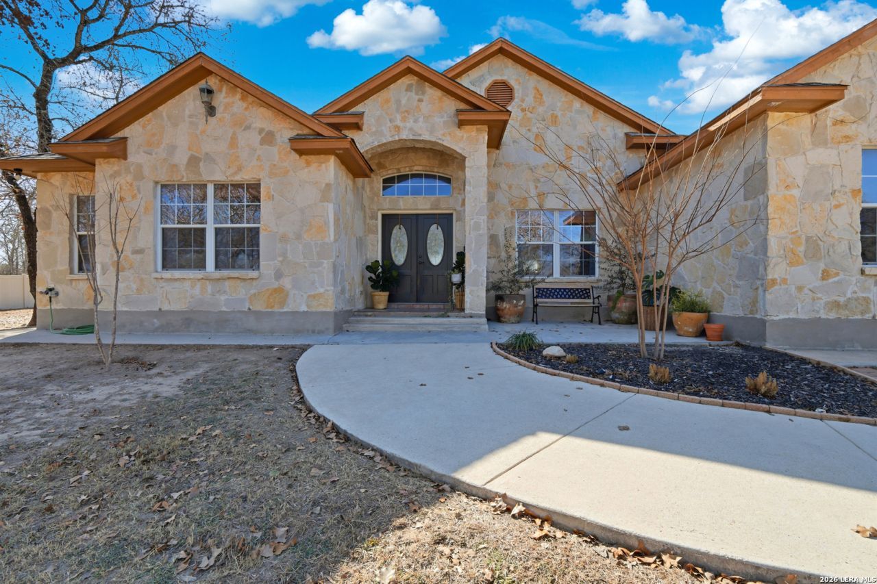 **OPEN HOUSE 3/8/2026 2-5PM** Texas Hill Country-inspired home on 1.34 acres in Natalia, just outside San Antonio. This unique property offers a thoughtfully designed, highly functional layout with generously sized bedrooms, each featuring its own private bathroom, a rare and highly desirable feature. Open, light-filled living spaces blend timeless character with tasteful updates throughout, creating a warm and inviting atmosphere. The kitchen opens seamlessly to the living area and features a charming breakfast nook, perfect for enjoying morning coffee while overlooking the peaceful outdoor setting. An additional flex space offers endless possibilities and can be used as a home office, extra bedroom, reading nook, or private library. Situated on 1.34 acres, the property provides ample room for outdoor living, future enhancements, or personalization, all while offering privacy, tranquility, and endless potential in a serene Hill Country setting.