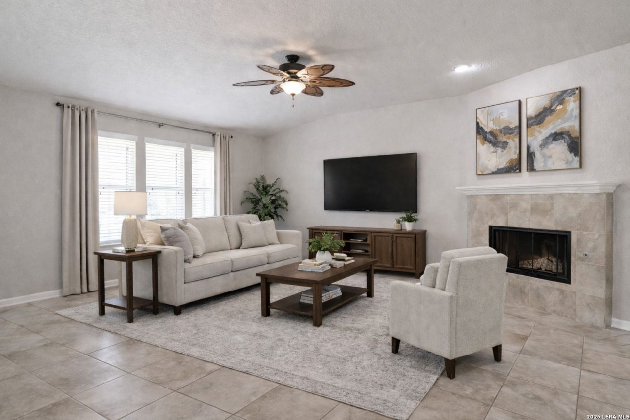 LOCATION, LOCATION, LOCATION! Welcome to this stunning 1.5-story home in the sought after gated community of Mountain Lodge, just north of Stone Oak! Step inside to an open-concept design featuring soaring ceilings, updated lighting and designer touches throughout. The neutral palette makes it easy to personalize and feel right at home. Enjoy the privacy of a split-bedroom layout, with the 4th bedroom perfect as a home office, guest room or flex space to suit your lifestyle. With only the game room and powder bath upstairs, this layout offers the best of single-story living-plus a bonus space for entertaining or relaxing. The heart of the home is the gourmet kitchen, complete with a center island, granite countertops, and abundant cabinetry- ideal for cooking, hosting or casual family meals. Step outside to your east-facing covered patio, perfectly positioned to enjoy shade in the afternoon while overlooking a private backyard oasis-perfect for morning coffee, weekend BBQs, or evening gatherings. Located in the highly-rated NEISD and just minutes from schools, shopping, restaurants, medical facilities and major highways-this home truly offers convenience, comfort, and community. Plus, enjoy all the great amenities Mountain Lodge has to offer and NO city taxes!
