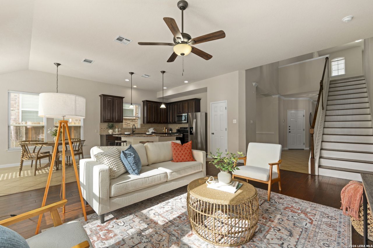 OPEN HOUSE SATURDAY MAY 2, 1PM-4PM. Located within the gated community of The Park at Two Creeks, this David Weekley home offers a well designed layout, quality construction, and move in ready presentation. Upon entry, youre greeted by a dedicated study and formal dining room. The main living area feels open and inviting, with hardwood floors and abundant natural light. The kitchen features a large island, and recently updated range (2025) with gas cooking. The primary suite is privately situated on the main level. Upstairs, youll find three additional bedrooms, a full bathroom, and a game room, offering separation and space for guests or family. New carpet throughout adds to the homes clean, well maintained feel. Residents of Two Creeks have access to the community pool, sports court, playground and trails. The home is within walking distance to highly rated Aue Elementary, and zoned to Rawlinson Middle School and Clark High School. Conveniently located near I-10, with quick access to La Cantera, The Rim, and Boerne. 25047 Mc Bride Dr is a must see.