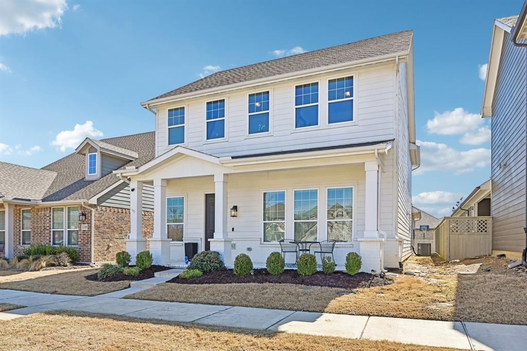 Charming 3-bedroom, 2.5-bath home with an inviting Southern-style front porch and a bright, open floorplan perfect for entertaining and everyday living. The living room features a cozy gas fireplace and flows seamlessly into the kitchen, which connects to the dining room through a convenient butler’s pantry. The gorgeous kitchen is the heart of the home, showcasing crisp white cabinetry, quartz countertops, a large seated island, gas cooktop, and a walk-in pantry. A cozy office downstairs provides an ideal work-from-home space. All bedrooms are thoughtfully located upstairs, including the primary suite offering dual sinks, an oversized shower with bench seat, and a walk-in closet. The secondary bathroom also features dual sinks for added convenience, and the upstairs game room boasts beautiful built-in cabinetry for storage and style. Step outside to relax on the extended patio—perfect for outdoor dining or unwinding after a long day. Located in the highly sought-after master-planned community of Pecan Square, residents enjoy resort-style amenities including multiple pools, parks and playgrounds, pickleball and basketball courts, a fitness center, co-working space and year-round community events. HOA fees include front yard maintenance and full access to all amenities, offering the ultimate blend of comfort, convenience, and work-life balance.