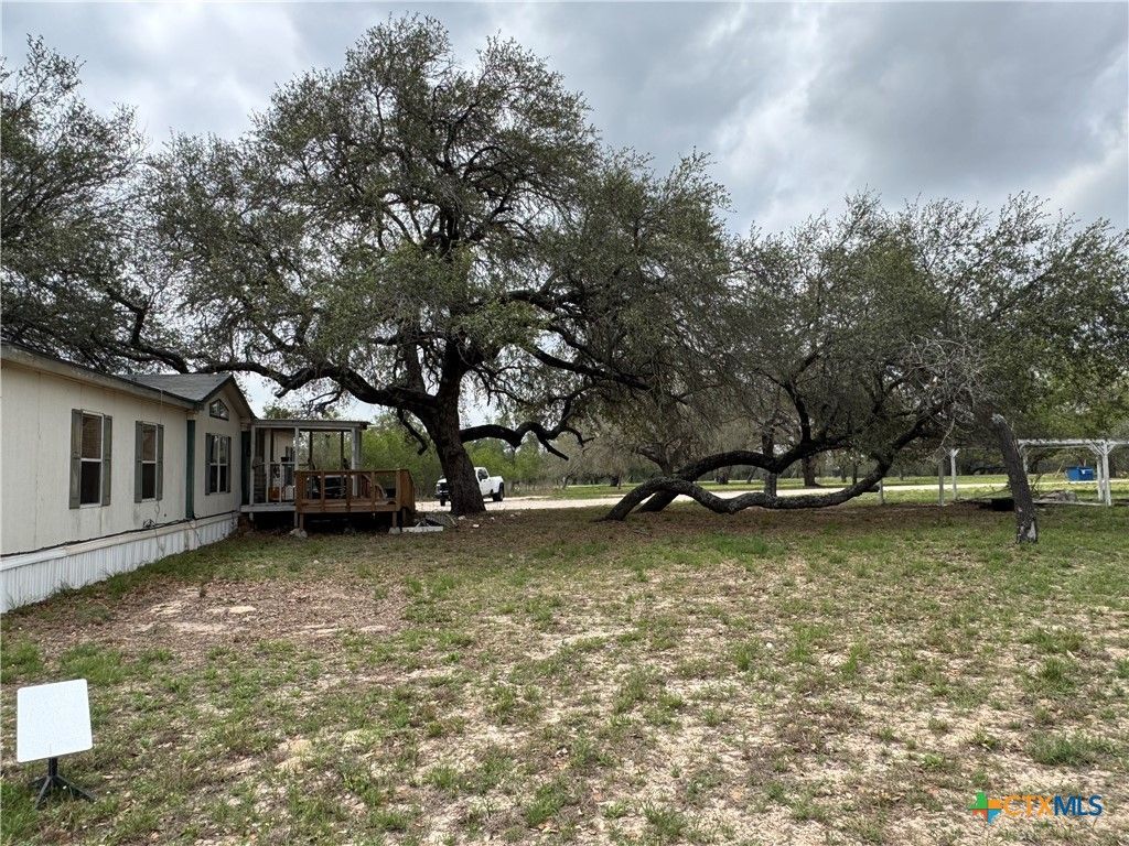 Quiet country get-away in Devine ISD school district! Close to Devine, San Antonio, And Lackland. Huge oak trees shade a 3/2 MH on almost 5 acres. Horses and livestock allowed. Great 4H or FFA project property! Home has handicap ramp to front porch. Back porch and patio area are shaded by huge oak tree. Two double carports, two storage buildings and garden arbor. Acreage is fenced on north side and back. Gently sloping to the back with large trees and lots of grass. Not in flood plain. Home has open floor plan with island kitchen, split bedrooms, and vaulted family with woodburning fireplace. New hot water heater and dishwasher. French door refrigerator included! Master has double sinks, soaking tub, shower, and walk-in closet. Home has been well-maintained. Come look at the cozy quiet country ranchette.