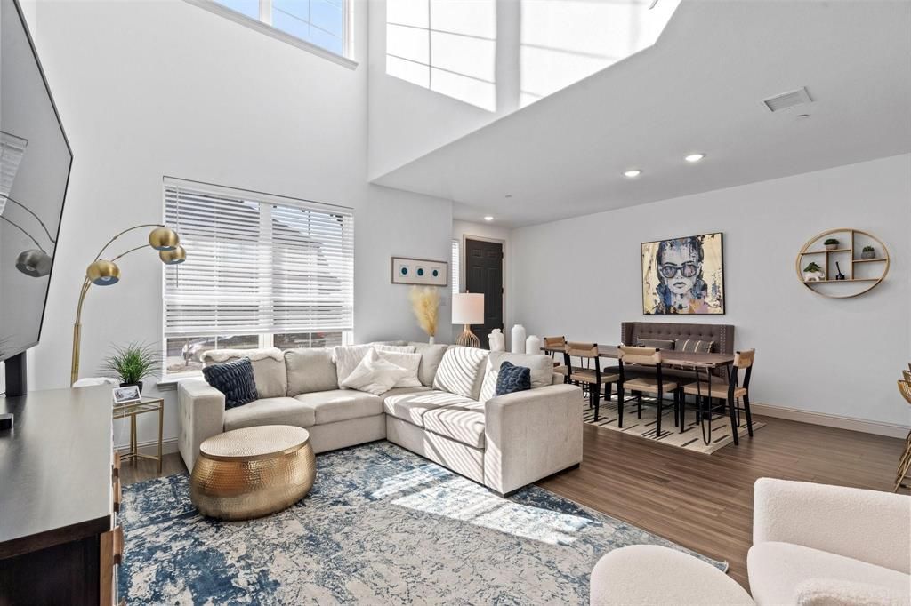 FRESH NEW PAINT INTERIOR OF HOME AND NEW FLOORING DOWNSTAIRS!!! APRIL RENT IS INCLUDED-FREE!!! RENT INCLUDES TWO FRIDGES, WASHER, DRYER, COFFEE BAR, HOA FEES, TRASH PICKUP AND SECURITY SYSTEM MONITORING!!! Come see this beautiful like-new CB Jeni townhome in the acclaimed community of Riverset in Garland, TX! 2 refrigerators one brand-new in kitchen, washer & dryer, and security system monitoring included in lease! As you enter the front door it opens to the dining area, vaulted ceilings in the living room, and the gourmet dream kitchen. Home offers natural light throughout, storage, & vinyl plank all downstairs. Owner recently painted the interior of the home. The kitchen has granite counters, a subway tile backsplash, stainless steel appliances, a 5-burner gas range, upgraded cabinets, a coffee bar station, an extended bar top for seating, and a walk-in pantry. Both bedrooms are upstairs, separated by a landing loft area with an open balcony. Primary retreat boasts stunning finishes like grand windows, modern tile, a quartz countertop, dual sinks, an extended shower with a seat, a vanity, and a large closet. The 2nd bedroom is oversized with a private balcony & walk-in closet. Home is conveniently close to retail, shopping, schools, dog park, community pool, parks and trails! THIS ONE IS TOO GOOD TO LET GO!