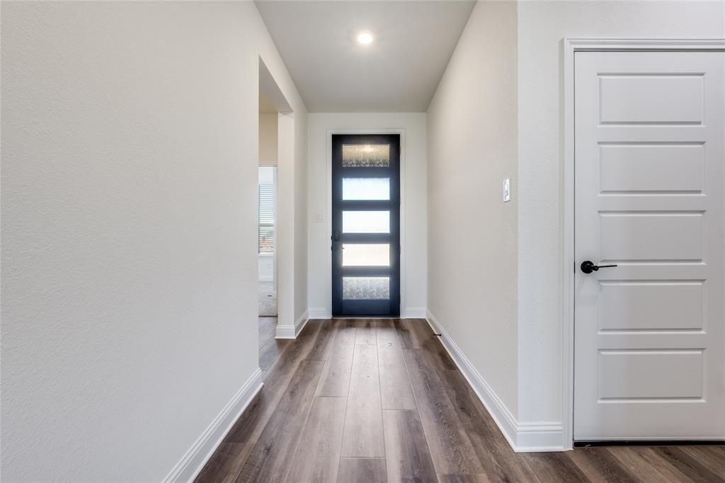 Discover a modern haven with this inviting home. From the open floor plan to the game room and den with doors, every detail exudes functionality and style. Enjoy the 9ft ceilings, whole house vinyl windows, and maple stained cabinets throughout. The upgraded kitchen boasts Whirlpool stainless steel appliances, quartz countertops, and a gas range. Retreat to the primary bath featuring an extended vanity, tub with tile surround, and quartz countertop. Step outside to the covered patio and lush yard with a full sprinkler system. Additional features include a brick front exterior, smart thermostat, and waterproof vinyl plank flooring. Welcome to your new sanctuary. Ask sales counselor about rate buy down opportunities.