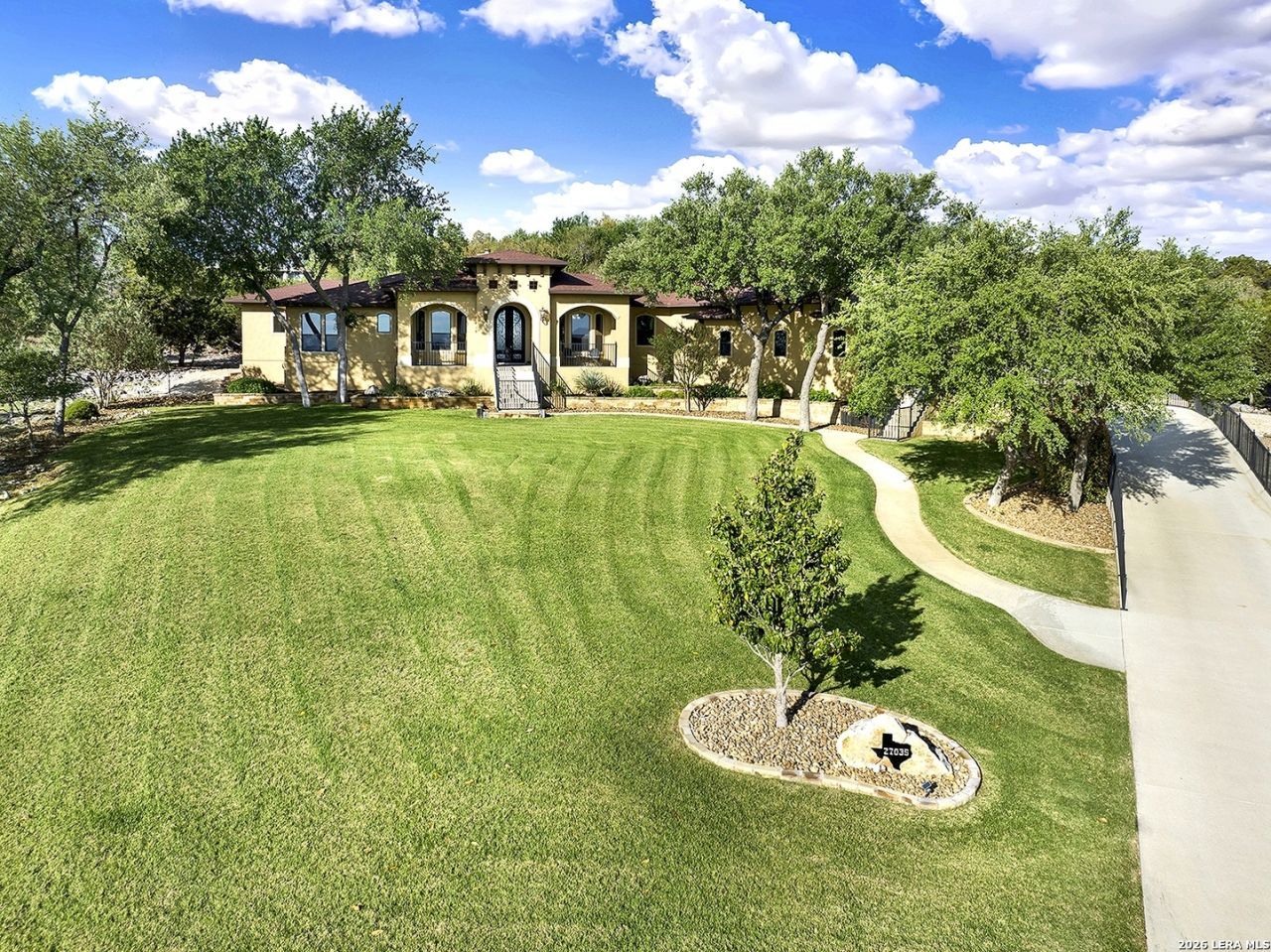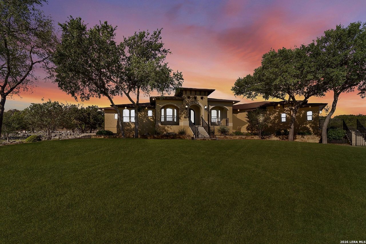 Views, Views, Views! *** 5 Car Garage *** Perched atop 1.6+ acres in the heart of the Hill Country, this meticulously maintained, turnkey estate delivers luxury, functionality, and breathtaking scenery in every direction * Designed for both everyday comfort and unforgettable entertaining, this stunning 5-bedroom, 3.5-bath home-with the flexibility to use the 5th bedroom as an office-offers outstanding front-facing views of hundreds of acres of trees and rolling hills * Step inside through impressive 8-foot custom San Marcos metal front and back doors and experience soaring ceilings, an open-concept layout, and porcelain wood-look tile flooring throughout-no carpet anywhere. The home features ADA-compliant hallways, ceiling fans throughout, and impeccable craftsmanship at every turn * Rooms at the front of the home showcase spectacular Hill Country views, while rear-facing rooms overlook the sparkling pool and natural landscaping * The spacious living room is anchored by a stunning rock wood-burning fireplace, creating a warm and inviting gathering space * The chefs kitchen is the centerpiece of the home, featuring an oversized island with bar seating, granite countertops, upgraded 5-burner gas cooktop, wine refrigerator, abundant custom Alderwood cabinetry, and a unique rock-accent built-in kitchen table/extended countertop-perfect for casual dining and entertaining * A huge separate dining room offers additional space for hosting guests and special occasions * The private Owners Retreat is a true sanctuary, offering panoramic views, dual closets with custom built-in dressers, and a spa-like bath complete with a relaxing Jacuzzi tub * A fully equipped ensuite/mother-in-law suite provides exceptional flexibility, featuring its own full bathroom, mini kitchenette, and private exterior entrance-ideal for guests, extended family, or multigenerational living * Outdoor living is equally impressive with a 15x30 saltwater pool and spa, enclosed within an incredible 1,800 sq ft screened structure, allowing year-round enjoyment with minimal maintenance and fewer pests * Relax under the covered patio with ceiling fans, take in the views from the expansive front porch, and enjoy the privacy of professionally landscaped surroundings with mature trees and natural beauty * Car enthusiasts and hobbyists will appreciate the massive 1,600 sq ft 5-car garage featuring epoxy floors, extra storage shelving, tall doors, and a dedicated bay with side backyard access * A wraparound driveway offers additional parking and convenient trailer access * Additional features include gutters, soffit lighting, water softener, and thoughtful upgrades throughout * Located in a gated cul-de-sac community near Natural Bridge Caverns, this property combines peaceful country living with everyday convenience-just 7 miles to IH-35, 25 minutes to Randolph AFB and New Braunfels, and 30 minutes to San Antonio International Airport. With a low tax rate and low HOA, this exceptio
