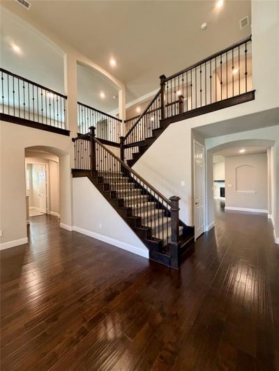 Discover this spacious and beautifully appointed home in the highly sought-after Austin Waters community. With a new roof, turf backyard, and over 5,400 square feet of living space, this property is designed for comfort, entertaining, and everyday living. Step inside to an open layout filled with natural light, where soaring ceilings and rich hardwood floors set the tone. The kitchen, dining, and living areas flow seamlessly together, making gatherings effortless. Upstairs, a dedicated game room, media room, and bonus room provide endless options for family fun, work-from-home space, or guest accommodations. The primary suite feels like a private retreat, featuring a spa-style bathroom with dual vanities, soaking tub, oversized shower, and a generous walk-in closet. Five additional bedrooms and three full baths allow for multi-generational living or plenty of space to host. Outside, the turf backyard means low maintenance and year-round greenery—ideal for kids, pets, or weekend entertaining.Living in Austin Waters means more than just a house—it’s about community; with access to a community clubhouse and pool, tree-lined streets with greenbelt access and nearby trails, you’re surrounded by natural beauty while still enjoying close proximity to destinations like Grandscape, The Star, Willow Bend and Stonebriar giving you an overabundance of shopping and dinging options. This is a rare opportunity to own a home that truly checks all the boxes: size, updates, community, and lifestyle.
