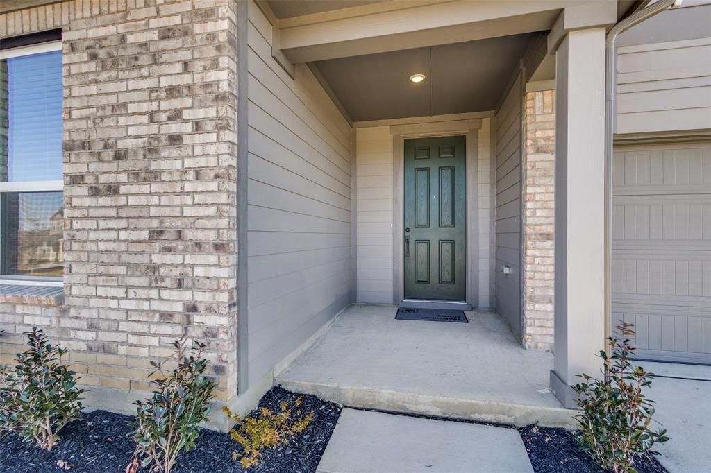 Experience sophistication at its finest in this meticulously crafted KB home. Step inside to discover a den retreat with elegant doors, soaring 9ft ceilings, and an abundance of light filtering through the whole house vinyl windows. The gourmet kitchen is a chef's dream, boasting Whirlpool stainless steel appliances, quartz countertops with a stylish edge, and a gas range. Unwind in the primary bath featuring raised cabinets, a spa-like separate tub and shower with tile surround, and luxurious quartz countertops. Outside, enjoy the covered patio and lush landscaping made easy with a full sprinkler system. With decorative touches like a brick front exterior and vinyl plank wood flooring, this home is the epitome of modern living. Ask sales counselor about rate buy down opportunities.
