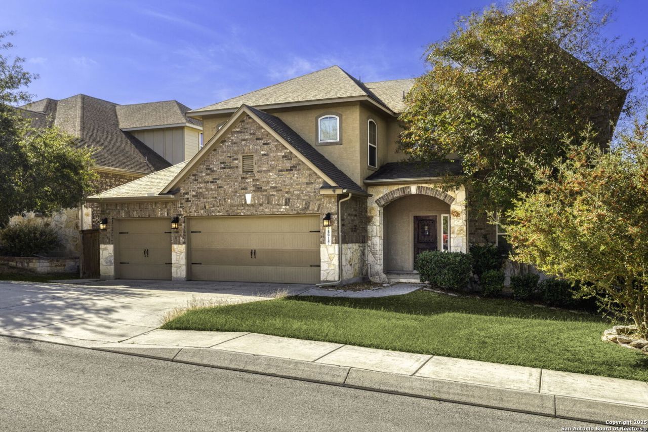Private Tours available 7 days a week from 8am-8pm ** Welcome to your dream home nestled in the prestigious Kinder Ranch gated community, where elegance meets convenience. This stunning two-story residence, with its prime location offering easy access to Highway 281 and the charming town of Bulverde, TX, is a rare find. Designed with family living in mind, this home boasts five spacious bedrooms, four bathrooms, and a dedicated study, providing ample space for work and relaxation. Step inside to discover a beautifully appointed main level featuring a formal dining room that sets the stage for unforgettable dinner parties. The gourmet kitchen is a chefs delight, showcasing stainless steel appliances, double ovens, gas cooking, and exquisite granite countertops. An island and breakfast bar and cozy breakfast nook with charming window seating provides an inviting space for family gatherings. Fridge included. The master suite is a serene retreat located at the back of the home, offering privacy, luxury, and comfort. A beautiful garden tub, dual sinks, and an extensive layout that promise deep relaxation. Crown molding adds a touch of sophistication to both the master bedroom and main dining area, enhancing the homes elegant ambiance. Enjoy leisurely evenings in front of a beautiful fireplace or under the covered patio overlooking your backyard oasis. Upstairs, discover a large loft and an additional flex space, perfect for a game room or secondary living area. This magnificent home combines style, space, and functionality in an unbeatable location.