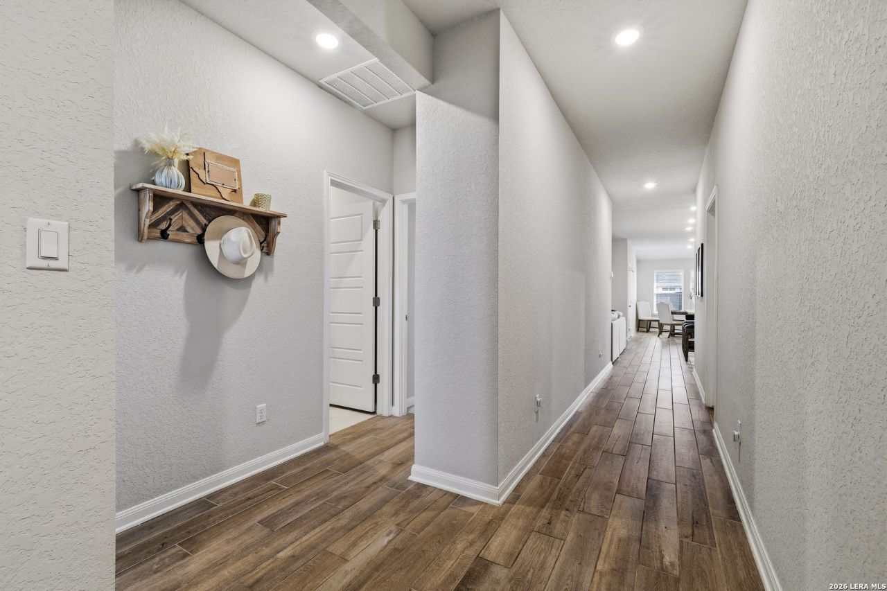 Welcome to this beautifully maintained newer Meritage energy-efficient home offering 3 bedrooms, 2 baths, and a spacious open-concept layout perfect for modern living. The private primary suite features elegant bay windows, a luxurious full bath with walk-in shower, double vanity, and a large walk-in closet. The chefs kitchen is equipped with quartz countertops, stainless steel appliances, a center island, and a walk-in pantry, flowing seamlessly into the separate dining area and cozy living space-ideal for entertaining. Wood-look tile flooring runs throughout the main areas with carpet in the bedrooms for added comfort. Enjoy outdoor living under the covered patio with a backyard thats perfect for relaxing on warm summer nights or weekend gatherings. Start your mornings on the charming front porch with a cup of coffee while taking in the homes beautiful curb appeal, enhanced by a three-sides brick exterior and full sprinkler system that keeps the landscaping looking its best year-round. Additional highlights include a 2-car garage with water softener, fiber internet, and pre-wiring for security. This energy-efficient home combines style, function, and savings-dont miss it!