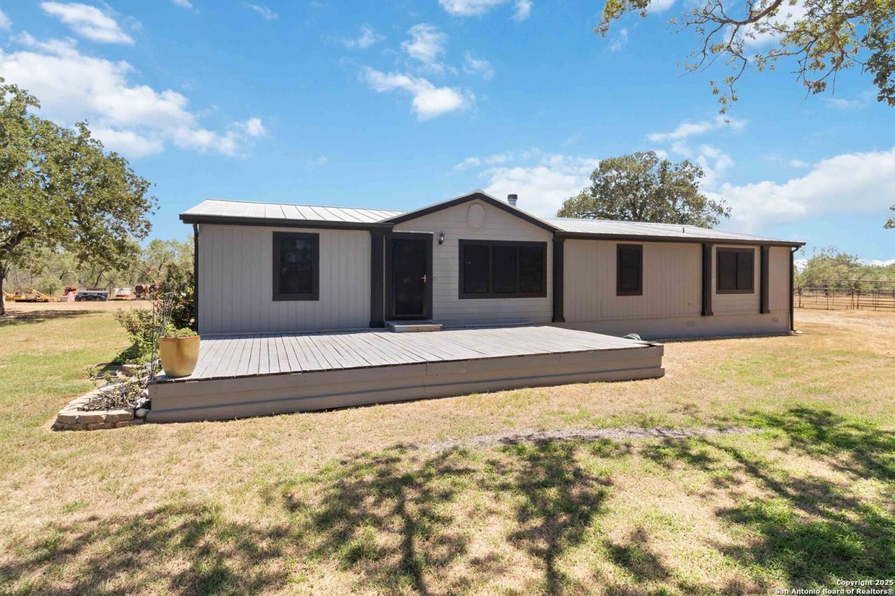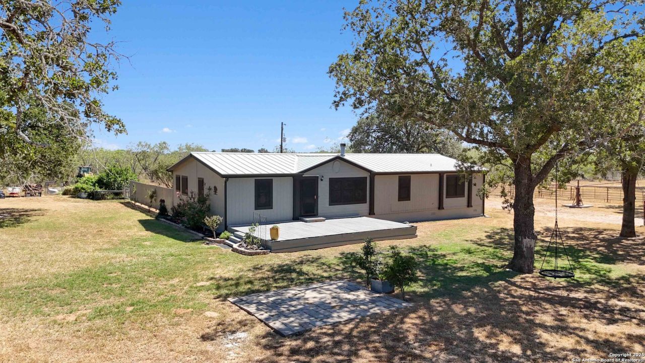 Less than an hour from downtown San Antonio, this 18-acre ranchette in the charming town of Stockdale offers the perfect blend of Hill Country living and wide-open space. Fully fenced and gated, the property is thoughtfully designed for a true country lifestyle, complete with multiple corrals, cow pens, dog runs, a chicken coop, and a horse barn. Additional improvements include a three-sided covered four-car carport with storage, plus multiple sheds for equipment and supplies. As you make your way down the quarter-mile private drive, youll be greeted by land that has been carefully cleared while preserving hundreds of majestic oak trees, creating a picturesque backdrop for this peaceful retreat. At nearly 2,200 square feet, the residence was designed for comfortable living with an open-concept layout, four bedrooms, and two full baths. The living room, anchored by a cozy wood-burning fireplace, opens seamlessly to the kitchen and dining areas. A formal dining room offers space for gatherings, while the breakfast nook provides a warm spot for everyday meals. The chefs kitchen is truly the heart of the home, featuring a beautiful wood-topped island, 42" cabinetry, and a complete appliance package including the refrigerator. The split primary suite is a private retreat with a spa-inspired bath offering a soaking tub and step-in shower. Three additional bedrooms and a full bath on the opposite side of the home provide comfort for family and guests. Outdoors, a fenced backyard invites relaxation under the Texas skies, complete with an above-ground pool perfect for summer nights of star-gazing. Whether youre expanding your ranching lifestyle, downsizing for a simpler pace, or seeking your very first Hill Country ranchette, this 18-acre estate in Stockdale has it all-space, functionality, and timeless Hill Country beauty.