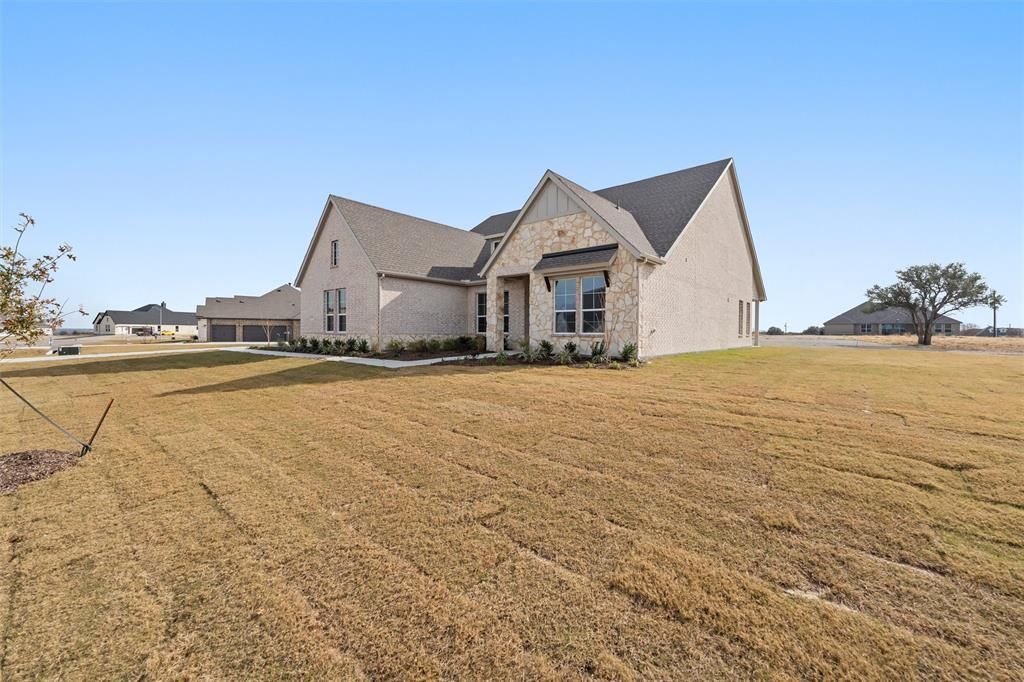Estimated November 2025 completion! Ask us about our Trade In Trade Up program, we can buy your home! Over 1 acre lot that sits on a hilltop with country views for miles! With 4 bedrooms, 3 bathrooms, and a flex room, this plan boasts just over 2,400 square feet of functional living space. Upon entering the home off the front porch, you enter the foyer. To the left is a hallway with a bedroom, walk-in closet and full bathroom, as well as a linen closet. Across the foyer is a flex room, perfect for a home office, formal dining room. Past the foyer is the family entry, with storage space and mud bench, which leads to the laundry room and three car attached garage. The home opens up to a large family room with a stately fireplace. Next to the family room is a gourmet kitchen, with a walk-in pantry, a large island. Next to living area is a dining space which overlooks the covered back patio. A hall leads to two bedrooms with walk-in closets, another linen closet and a shared full bathroom. The primary ensuite featuring a large walk-in closet and bathroom with a dual-sink vanity, standalone tub and glass shower