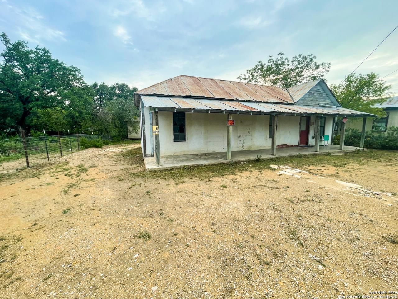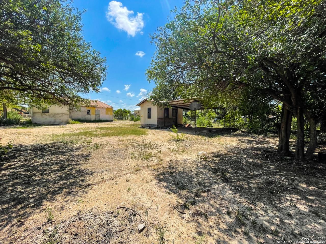Step into a piece of Brackettville proper History. Used as a general store in the early 1900s this property is ready to be taken over and remodeled to its potential. Located directly across from the Historical Museum in the heart of Brackettville, this property is an investors dream. Its large lot hosts an additional storage area with a carport as well as an original "outhouse" giving it that historic feel. When you arrive to the property you are greeted with a large front covered patio. Enter into the living room/kitchen where the current owners began to install new flooring. Remaining flooring to finish the job remains with the home. As you walk into the bedroom off the living room you will find the bathroom as well as an additional bedroom off the rear. Also located in the primary bedroom is an entrance door to the basement below, once used as storage for the local medical needs. Come and take a look and make plans of bringing this unique home back to life!