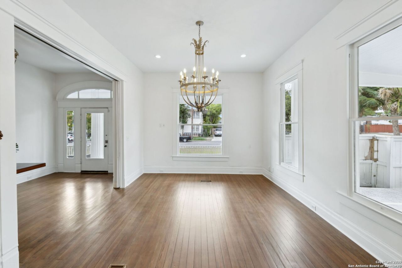 321 E Dewey Pl is a distinguished property nestled in the heart of San Antonios desirable Tobin Hill neighborhood. Built in 1905 and thoughtfully remodeled in 2023, this three-story building offers approximately 4,248 square feet of space on a generous 0.36-acre lot. The property showcases both historic charm and modern upgrades. Original long-leaf pine floors have been refinished and restored, complementing soaring 11-foot ceilings throughout. A grand wrap-around staircase, formal parlors, a dining room, and inviting breakfast and sunrooms highlight the homes timeless architecture. Contemporary enhancements include marble counters in all bathrooms and the kitchen, as well as stylish concrete tile flooring in other areas. With five spacious office rooms and three full bathrooms, the property provides flexibility for a single user or a dynamic office setup. A newly updated, oversized three-car garage with 10-foot ceilings, mature trees, and an expansive yard create additional opportunities for parking, entertaining, or future enhancements. Ideally positioned just minutes from The Pearl, the San Antonio River Walk, downtown, and a variety of dining, shopping, and cultural attractions, this property offers the perfect balance of historic character, modern finishes, and prime location with exceptional potential for office use.