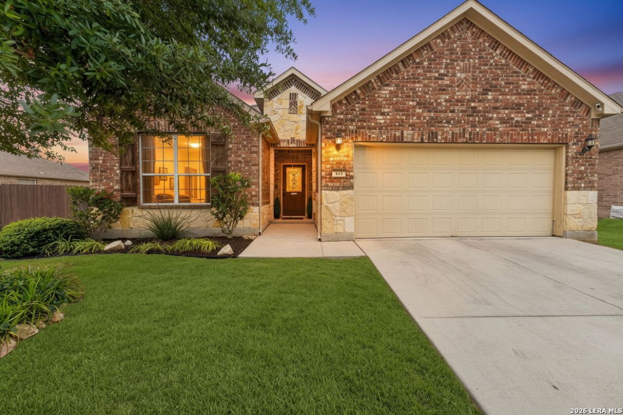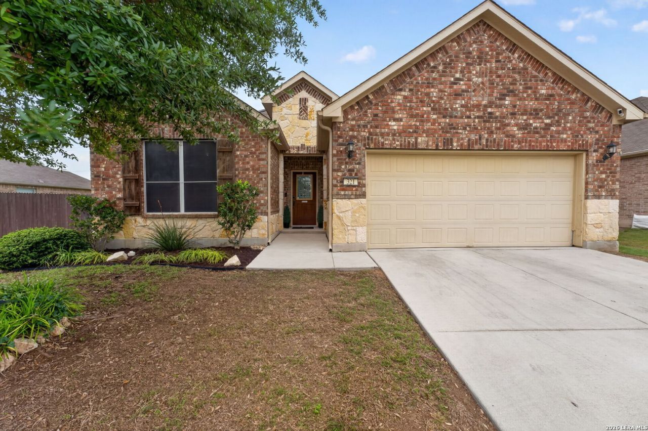 Welcome to 321 Silver Buckle in the Estates of Kensington Ranch in Schertz! This spacious 4-bedroom, 3 full bath home offers nearly 3,000 sq ft, a flexible layout and a tandem 3-car garage with PLENTY of room to spread out and make it your own. Youll love the curb appeal with the beautiful stone and brick exterior, and the grand entry sets the tone with high ceilings and an open feel. The layout is super functional, with a mud room right off the garage, two living areas including one with a cozy stone fireplace, and a formal dining room with added recessed lighting that could easily double as a home office or flex space. The kitchen is light, bright, and ready for everyday living or entertaining, featuring granite countertops, stainless steel appliances, a large island, walk-in pantry, and tons of cabinet space. The primary suite is conveniently located downstairs and includes a spacious bathroom with a soaking tub, separate oversized shower, and walk-in closet. Theres also a secondary bedroom and full bath on the main floor - endless possibilities! Upstairs, youll find two large secondary bedrooms and additional living space to fit your needs. Out back, enjoy a large covered patio, extended fence line for added space and privacy. PAID OFF solar panels help with energy efficiency and the extended 3-car tandem garage also offers extra storage with convenient drop-down shelving. Located just minutes from Randolph AFB, in SCUCISD schools, and with easy access to highways, shopping, and restaurants, this home checks all the boxes!