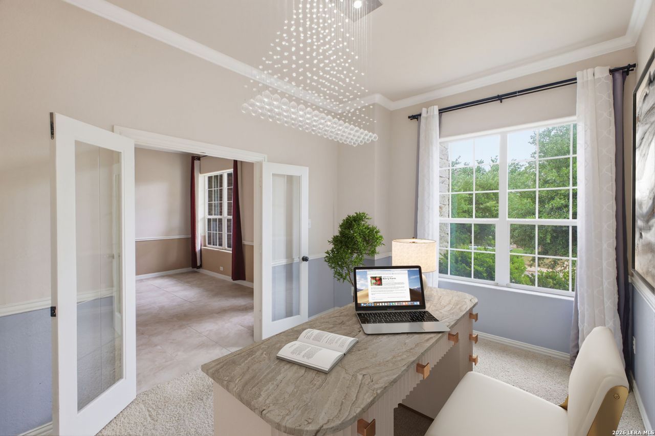 Your Move Up Home in The Preserve at Indian Springs*Sip your morning coffee and catch up on the news on your I-pad on your covered front porch*Prepare gourmet meals in open floor plan kitchen with granite countertops and island and gas cooking stove*Host holiday meals in dining room at the front of the home*Entertain guests in the living room*Relax after a long day in the primary bedroom with high ceilings*Refresh in primary bath with separate garden tub and shower, dual vanities, and walk in closet* Work from home in office at the front of the home*Flex room in the middle of the home can be used as home theater, game room, or play room*Enjoy afternoon BBQs on covered back patio with .21 of an acre lot*3 car garage is ready to house your sports car collection*Spend quality time with loved ones at community pool, park/playground, jogging trails, pickle ball court*Comal ISD-Indian Springs Elementary is behind the home at the entrance of the subdivision*Golfers-enjoy a round at the course at the JW Marriott Resort close to the home*Convenient to 281 North-dining ,shopping, entertainment*
