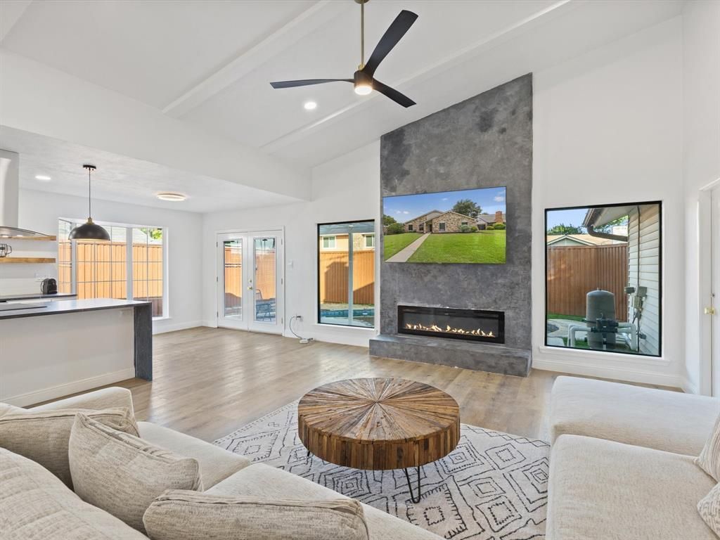 Immaculately maintained single-story 4-bedroom home perfectly situated in the heart of Plano! Step inside to find elegant formal living and dining areas. Opening into a spacious family room featuring a cozy fireplace, a wall of windows, and stunning views of your private backyard retreat. The bright, inviting kitchen boasts double ovens, ample cabinetry, and generous storage space FULLY renovated. The expansive primary suite includes an en-suite bath and a separate sitting area, ideal for relaxation. Enjoy the beautifully landscaped backyard with a board-on-board privacy fence, lush garden spaces, a well-established Concord grapevine, and a sparkling pool. There's also an extra fenced-in yard area on the west side of the home—perfect for pets or play. Additional features include a large utility room and a brand-new, open-concept floor plan with luxurious, modern finishes throughout. This home effortlessly combines comfort, style, and convenience!