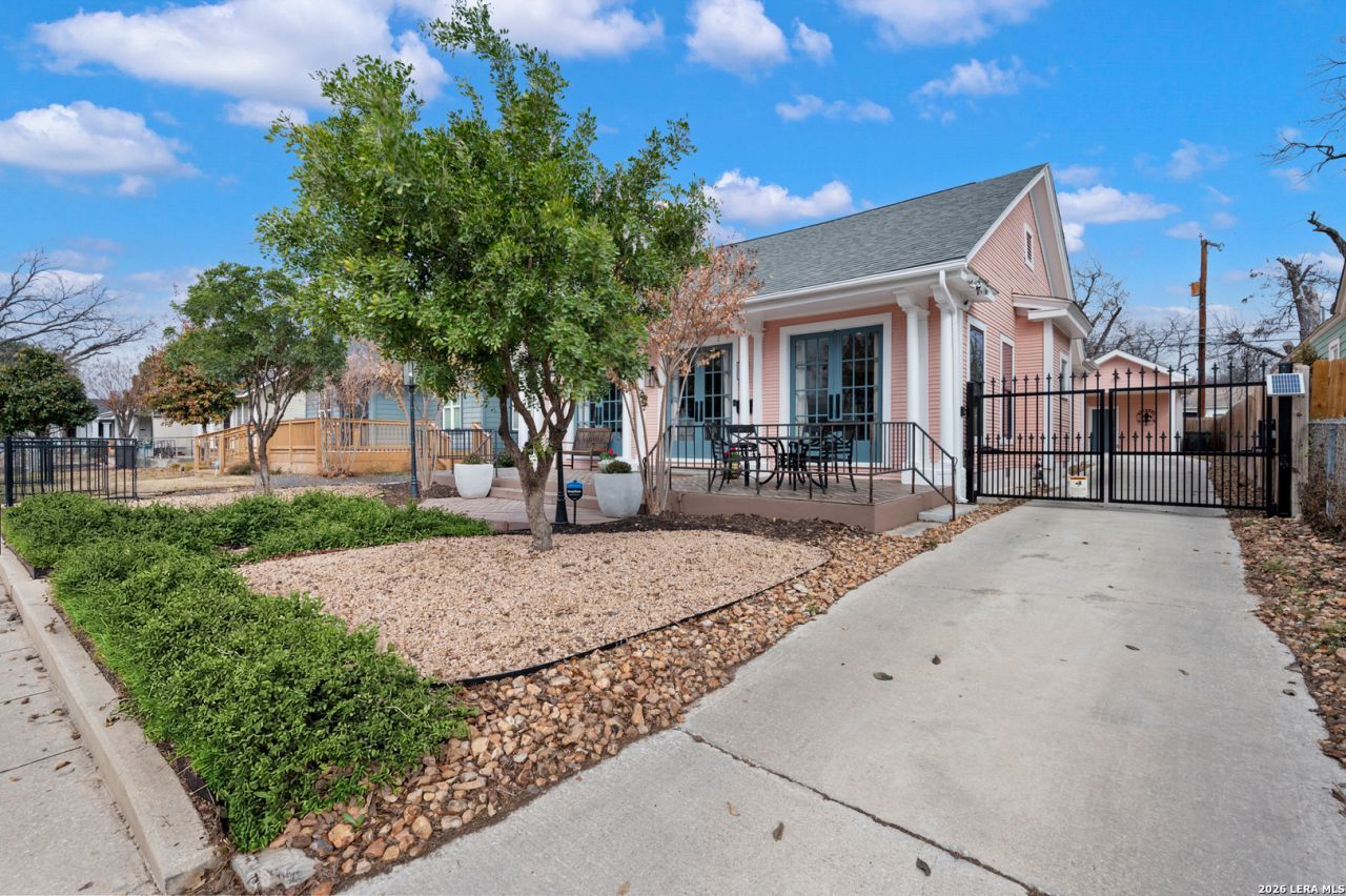 A pink-painted cottage with a classic, historic Tobin Hill profile, this home stands as an established presence in the neighborhood, its character sharpened by a thoughtful set of recent improvements. French doors open inward to interiors anchored by high ceilings and original-scale built-ins, with refinished hardwood floors and patterned tile carrying a clear visual thread throughout. The living room and kitchen sit side by side, grounded by a fireplace and shaped into a space that feels intimate and indulgent. The primary suite continues the homes indulgent tone with marble, tile, and a beautifully appointed walk-in shower. A beautifully finished mudroom and laundry area supports daily living without disrupting the mood. Outside, the backyard offers an inviting outdoor extension, complemented by an electric gate and covered carport that add privacy and ease. 3 bed 2 bath 1,670 sqft Refrigerator, washer/ dryer, and kitchen table with chairs convey with the home