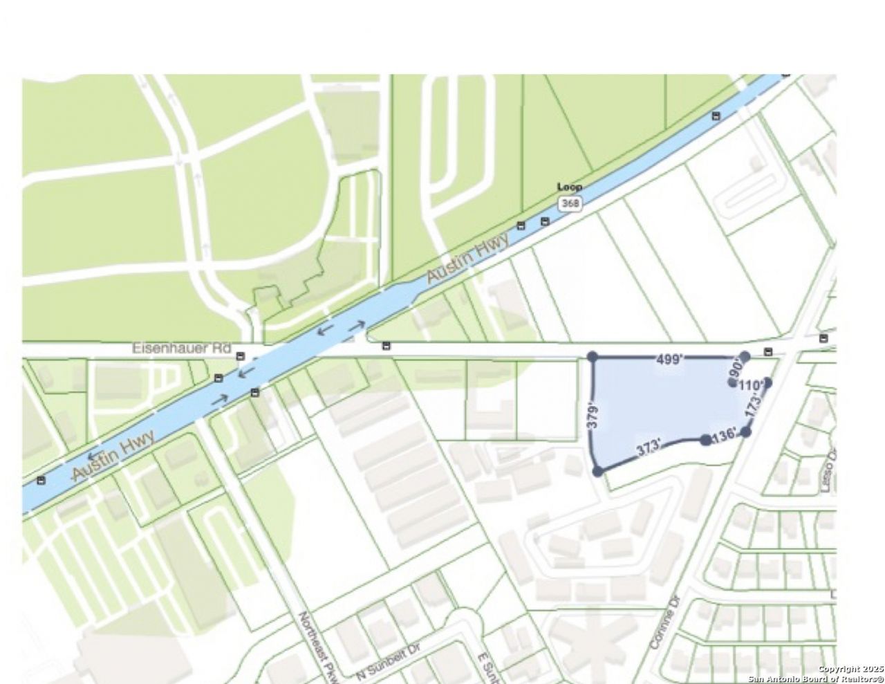 3.65 Acres Vacant commercial land Zoned C-3 Directly on southwest corner of Eisenhauer Rd and Corinne Dr between I35/Loop 410 and Austin Hwy Near Fort Sam Houston with boosting daytime population. Traffic volumes: approx. 11,237 VPD on Eisenhauer, 13,401 VPD on Harry Wurzbach, 22,313 VPD on Austin Hwy Ideal Uses Best suited for commercial development-retail, offices, hospitality, hotel, or self-storage-per existing listing outlines Not in a floodplain, flat terrain, with high visibility and strong daytime demographics