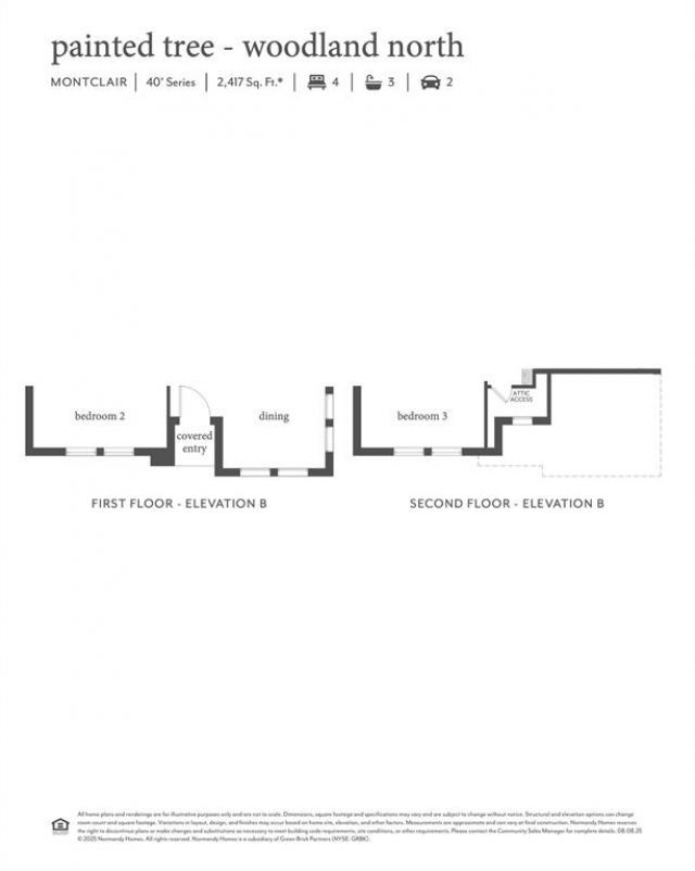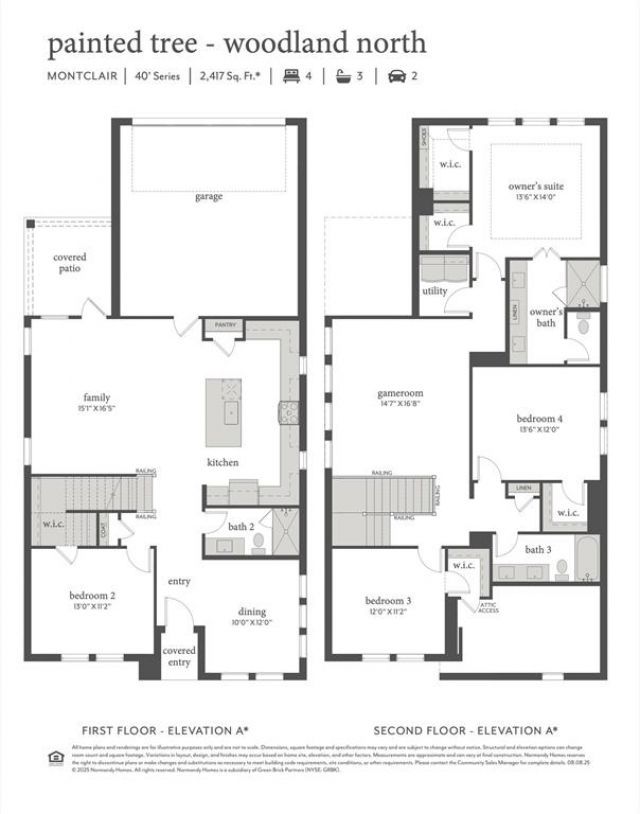 NORMANDY HOMES MONTCLAIR floor plan. Discover the Montclair home plan offering 4 bedrooms, 3 bathrooms, and 2,417 square feet of thoughtfully designed living space. Located in the scenic Painted Tree Woodland North community, this two-story home features a private owner’s suite, a versatile gameroom, and a covered patio perfect for outdoor entertaining. The open-concept kitchen flows seamlessly into the dining and family rooms, creating a warm and inviting atmosphere for gatherings. With multiple walk-in closets, a dedicated utility room, and a two-car garage, the Montclair combines functionality with modern style. Ideal for families seeking comfort and convenience, this home plan is a standout. MOVE IN READY NOW!