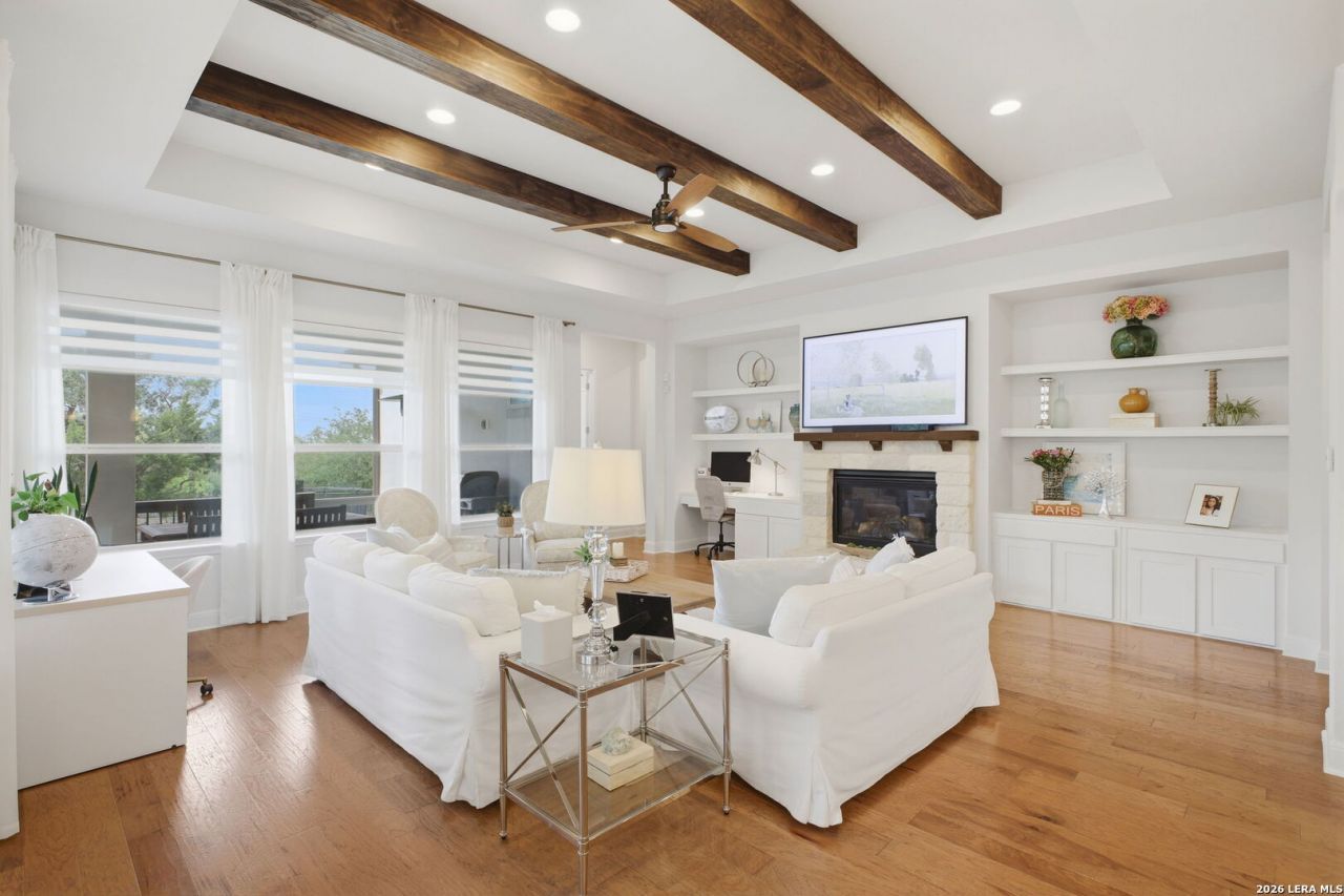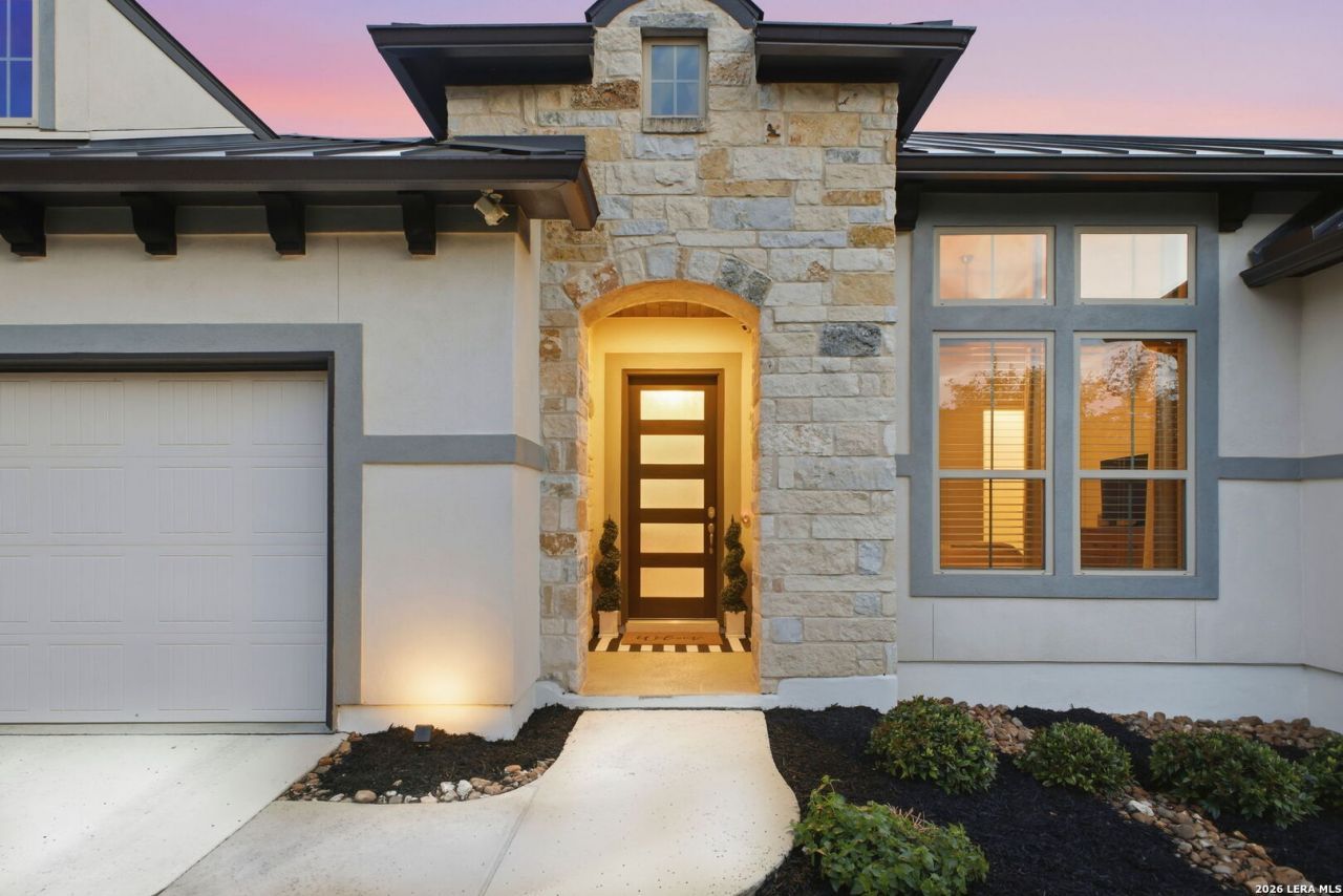 Welcome to your dream home in the highly sought-after community of Cielos at Cibolo Canyons! This stunning single-story, energy-efficient home boasts exceptional curb appeal. With its open floor plan, high ceilings, and abundant natural light, this residence is the perfect blend of comfort and refined style, nestled within top NEISD public schools. The spacious kitchen features stainless steel appliances, gas cooking, a glass-tile backsplash, and a large island that seamlessly flows into a cozy family room-creating an ideal setting for both everyday living and entertaining. The private primary suite is a true retreat, complete with bay windows and a spa-like bathroom featuring an oversized shower, freestanding tub, double vanities, and a generous walk-in closet. This home also offers three additional bedrooms, including one with an en-suite full bathroom plus a separate study with glass doors provides a dedicated space for a home office, playroom, or guest use. Step outside to enjoy truly stunning Texas sunsets from the extended covered patio, which opens to an oversized backyard with endless potential for outdoor living. Residents enjoy access to resort-style amenities, including two seperate amenity centers, pools, a lazy river, a kids splash area, fitness centers, playground, soccer field and over 7 miles of scenic walking trails for year-round enjoyment. Conviniently located just mins from Hwy 281, Loop 1604, the JW Marriott Hill Country Resort, TPC San Antonio as well as premier shopping and dining. Dont miss the chance to own this incredible, move-in-ready, energy efficient home. Schedule your showing today!