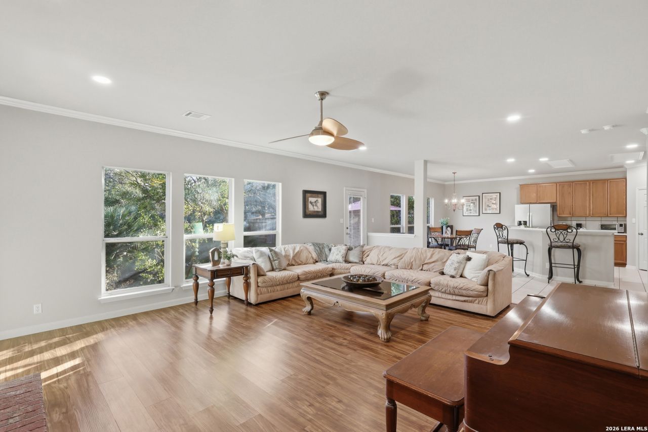 So Much Value Under One Roof in Finesilver! This spacious 3,850 sq ft, 5-bedroom, 3 full bath home offers an incredible amount of living space in the highly desirable Finesilver community. The open floor plan features two generous living areas and two dining spaces, making it ideal for both everyday living and entertaining. A guest bedroom with a full bath is conveniently located downstairs, along with the utility room. The main living area showcases a cozy fireplace framed by built-in shelving, creating both warmth and functionality. Recent updates include luxury vinyl plank flooring in the living and formal dining areas and fresh interior paint. Upstairs, youll find a large primary suite with a spacious bathroom and separate his-and-her closets. A sizable game room and three additional bedrooms all with walk-in closets that provide plenty of space and storage for everyone. Major improvements include two HVAC systems replaced in 2023 and foundation repairs completed in 2021 with a transferable warranty for added peace of mind. Step outside to enjoy lush, tropical landscaping and a private backyard retreat. This home combines space, updates, and long-term value in one of the areas most sought-after neighborhoods.