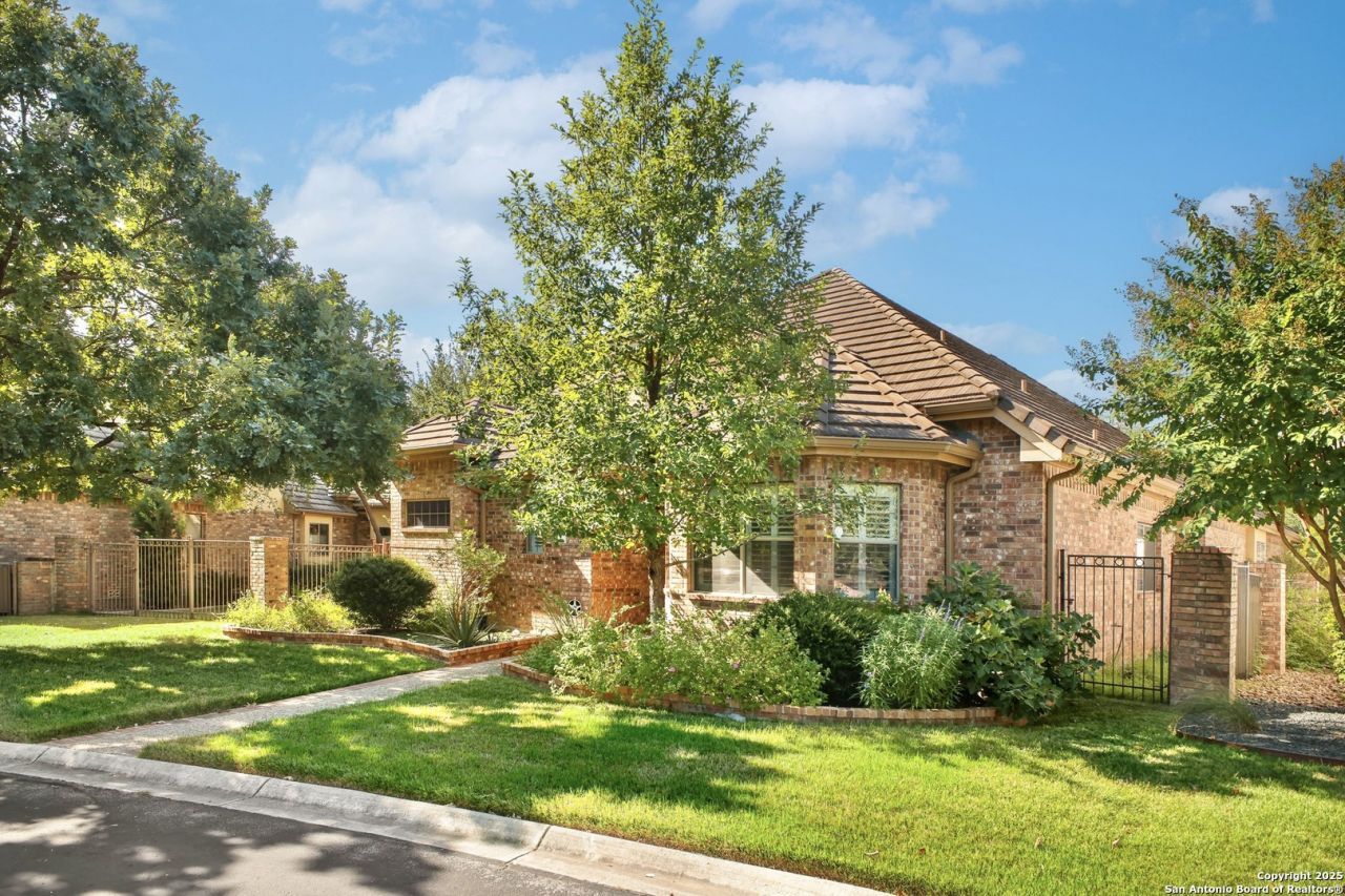 Experience the pinnacle of luxury living in the heart of San Antonios prestigious Dominion community. Pristine and low maintenance, this single story home offers lots of natural light and an open floor plan perfect for entertaining. Upon entry, youre greeted by a sophisticated wet bar seamlessly connecting the kitchen and living area with a gas fireplace. This 3 bedroom home has a spaciouc island kitchen with gas cooking, built-in refrigerator, separate breakfast and dining room that boast a statement chandelier, and plantation shutters throughout. The Luxury master suite is a private retreat, offering a spa-like bath with dual vanities, custom accents and a large walk-in closet. The separate study has beveled glass French doors and hand scraped wood floors. Enjoy your coffee in the completely enclosed sunroom or you can step out to your covered patio perfect for unwinding. This home also offers a 2-car rear-entry garage for added convenience with plenty of additional parking. A perfect blend of timeless elegance and modern convenience, this home has it all and is an ideal lock-and-leave option. Enjoy close proximity to IH-10, The Rim, La Cantera, and 1604! Dont miss out on this exceptional value in The Dominion. Be sure to visit the Dominion Country Club to learn more about the memberships available.