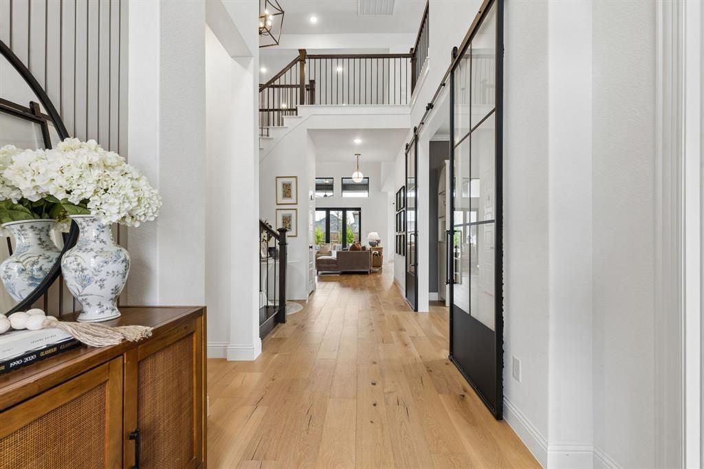Welcome to 410 St. John Lane—where resort-style living begins the moment you arrive. The home’s stunning outdoor retreat, complete with a sparkling pool, spa, and expansive entertaining spaces designed for unforgettable gatherings. This thoughtfully customized Coventry home on an oversized lot is designed to maximize indoor comfort, outdoor living and lifestyle convenience. Soaring ceilings, abundant natural light, and architectural details set this property apart in Star Trail. The open living area features large windows and a slider door with views that extend directly to the backyard. A modern pool and spa anchor the outdoor space, connecting two distinct yard areas—one with synthetic turf for low maintenance play and one with a lush grass yard for pets, sports, or future customization. The expansive outdoor living center includes electric screens for year round enjoyment and seamless indoor outdoor flow. Inside, the chef’s kitchen overlooks the living room, creating a natural gathering space with clear sightlines to the outdoor retreat. A first floor secondary bedroom offers ideal flexibility for guests or multigenerational living. The spacious primary suite includes a spa like bath and a generous walk in closet with direct access to the oversized laundry room. A nearby mudroom provides a convenient daily drop zone. Upstairs, find 2 large bedrooms, a private media room and an open game room with a powder bath. The upgraded 3 car tandem garage is a standout feature, designed for today’s busy lifestyle. The bump out provides valuable extra storage, while the overhead racks and workbench keep gear, sports equipment, and household essentials organized and accessible. 410 St. John Lane blends space, style, and thoughtful customization in one of Prosper’s most sought after communities. A limited-time lender-paid 2-1 buydown is available, allowing reduced monthly payments for the first two years at no cost to the buyer or seller. Inquire with the listing agent.