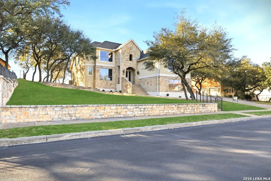 Perched atop one of the highest points in the gated estate section of Sonoma Ranch, this exceptional home sits on a 0.76-ACRE lot offering both city and Hill Country VIEWS. The exquisite 5-bedroom, 4-bath residence features a timeless neutral color palette, soaring ceilings, an open-concept layout, and abundant natural light throughout. The GOURMET KITCHEN anchors the home with granite countertops, double ovens, gas cooktop, and extensive oak cabinetry-perfect for hosting family and friends. The oversized first-floor primary suite is a true retreat, highlighted by a SPA-INSPIRED BATHROOM and DUAL WALK-IN CLOSETS. A second bedroom is also conveniently located on the main level. Upstairs, youll find three additional bedrooms, a dedicated office, and two extra-large media/game rooms perfect for movie nights or family gatherings. This home has been updated with recent upstairs HVAC equipment, fresh interior paint, and carpeting throughout. Step outside to a large, level backyard where breathtaking views and the natural Hill Country setting create endless potential; your dream pool, outdoor kitchen, and backyard oasis start here. Enjoy resort-style living in Sonoma Ranch with amenities including pickleball, tennis, basketball and volleyball courts, pool, and playground. The home is zoned to two of San Antonios SCHOOLS - Beard Elementary and Garcia Middle School - and is just minutes from NISD high schools Brandeis and OConnor. Located five minutes from La Cantera and The Rim shopping and dining destinations.