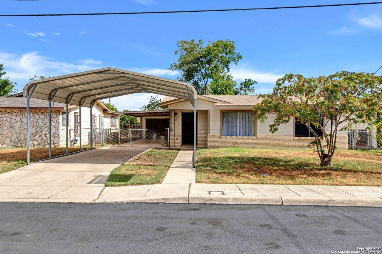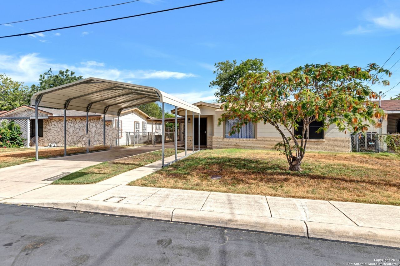 Owner Financing available with 35% down, and 120-month term. Conveniently located near IH-35, Hwy 90, downtown, Texas A&M, and Palo Alto College, this charming single-story home is ready for new owners. It features new ceiling fans in all bedrooms and the kitchen, along with updated light fixtures in the living, bathroom, and kitchen. Fresh paint has been applied both inside and out, enhancing the homes appeal. Interior highlights include new carpet in two bedrooms and the living room. The kitchen boasts tile countertops and back splash, new stove, and cabinets with new hinges and knobs. The bathroom features tile flooring and a bath/shower with tile. Solar screens on all windows provide energy efficiency. Outside, the property offers a detached garage with an AC window unit, an attached carport, and an additional metal carport at the front of the driveway. This home is a must-see for those seeking convenience and modern comfort!