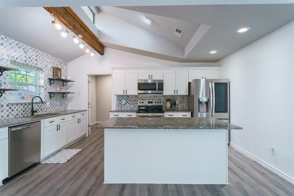 Beautiful single story home near Lake Ray Hubbard! Home was remodeled in 2021 while maintaining its original charm and character! Features include fresh paint throughout the home, double entry doors, wonderful open floor plan, stunning updated kitchen, wood vaulted ceiling, relaxing atrium, beautifully updated bathrooms, wood burning fireplace and so much more!