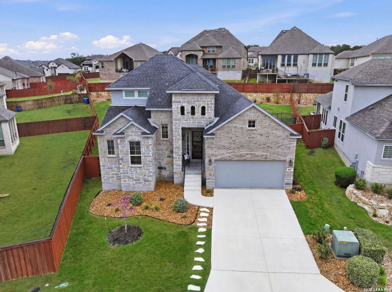 Assumable VA loan of 4.99%. Welcome to 4207 Artabri, a gorgeous 4 bedroom, 3 full bath, 2.613 SF 1.5 story home, located in the highly desirable gated community of Cibolo Canyons, near the TPC San Antonio resort! Built in 2022, this home shows like-new and features an extra large yard of .28 acres that is fully fenced along with a spacious covered back patio, ideal for summer dining and relaxing. The yard is large enough for a variety of uses such as a future pool, sports court and more. On the main floor, you will find the primary bedroom suite, along with 2 other guest bedrooms, a full bathroom, a spacious family room that seamlessly blends with the adjoining kitchen, a breakfast nook, as well as a flex room ideal as a private office/study or a craft/game room. The kitchens allure is the massive granite island that overlooks the family room while the built-in oven and microwave, the gas cook top along with the stainless appliances round out the stunning kitchen!. Wood-plank tile flooring is predominant on the main floor as well. Upstairs features a large game room, along with a private guest bedroom and full bathroom. Tall ceilings and lots of recessed lighting are just some of the wonderful touches this beautiful home offers. The curb appeal is also undeniable and you will be proud to come home to this home every time! The pool, park and clubhouse are additional amenities the community offers, allowing you to have it all. TPC San Antonio resort is literally 2 minutes away, allowing you to take a staycation at one of the best resorts in all of Texas anytime you want.