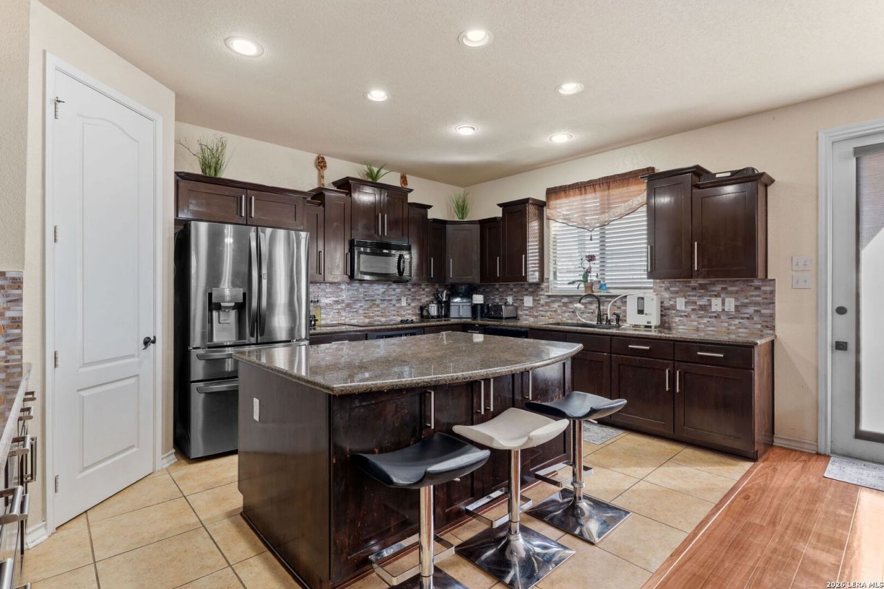 ** OPEN HOUSE on Sunday, 03/08/2026 from 1-3pm ** Located in the Presidio Heights neighborhood within a gated community, this two story home offers a thoughtful layout paired with stylish finishes throughout. An open floor plan creates an easy flow from the formal dining room into the main living area, where a fireplace and recessed lighting add warmth and character. The kitchen is both functional and inviting, featuring dark brown cabinets, a large kitchen island, and a breakfast bar that opens to the living space. A beautiful handrail leads upstairs to a small loft and a flex room ideal for a home office, workout room, or additional living space. The primary bedroom provides a comfortable retreat with an ensuite bathroom that includes double vanities, a separate shower and soaking tub. The upstairs guest bathroom is highlighted by beautiful tile work in the shower, adding a refined design touch. Outdoor living is enhanced by a backyard with a deck and attached shade, offering a great space for relaxing. Additional features include a metal roof and water softener. Neighborhood amenities include a park and pool, while the location offers easy access to Loop 1604 and I10, a short commute to Camp Bullis, and close proximity to La Cantera and Six Flags. The property is located within award winning NISD.