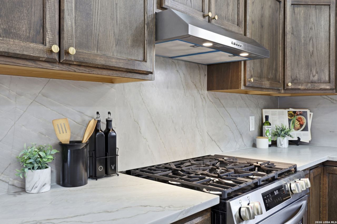 Beautifully renovated 4-bedroom, 2-bath home in the established Windcrest community featuring an open floor plan, two spacious living areas, providing flexibility for a formal sitting area, media room, home office, or play space. An oversized attached two car garage offers plenty of space for parking and storage. Bright, updated interiors flow seamlessly for comfortable everyday living and easy entertaining. The modern kitchen offers stylish cabinetry, stainless steel appliances, and a gas range, perfect for cooking enthusiasts. The primary suite is a true highlight, showcasing a spa-like bathroom with dual sinks and an oversized walk-in shower with custom tile and dual shower heads. Enjoy a large backyard shaded by mature trees. The yard also features a generously sized covered patio providing plenty of space for relaxing, entertaining, or outdoor activities. Conveniently located near shopping, dining, and major highways, this move-in-ready home combines style, functionality, and an unbeatable location.