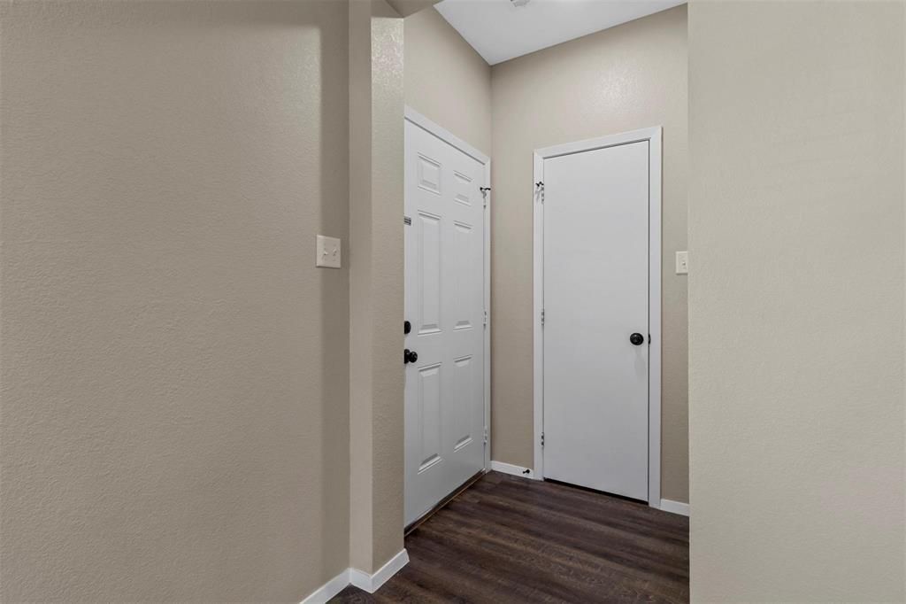 Stunning 3 bed 2 bath perfectly located in Denton! Open floor layout with luxury vinyl planking, 2 inch Faux Wood Blinds, and sleek fixtures. In the kitchen you will find beautiful dark cabinetry with lots of space as well as granite countertops, an island that includes a double sink, and stainless steel appliances including a microwave, refrigerator, stove, and oven. Master includes walk in closet and dual vanities in bathroom. Home is within a short distance to popular Denton Town Square, Shops, and Restaurants. There is convenient access to I35W and I35E, Loop 288 and Hwy 380! *Stock photos of model unit- photos show the next door unit, rooms are flipped in this property. Additional Fee: $50 monthly service fee for HVAC and gutter cleanings.