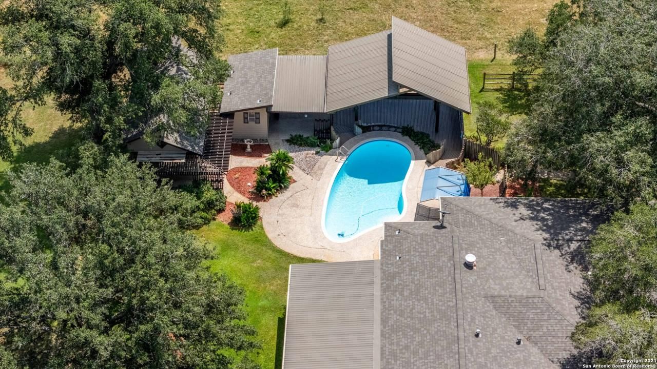 WOW STEP INTO THIS BLAST FROM THE PAST ONE OF A KIND VINTAGE PROPERTY!! This property boasts endless amenities, welcoming you in with breathtaking 100 plus year old oak trees surrounding the property. There is one water well on property. Well maintained 2455 sqft home features 2 bedrooms, 2 bath with large living room, dining room, sun room and office space/ flex space for additional bedroom. Granite countertops in the kitchen with travertine backsplash and double ovens. Large inviting in ground pool features large covered picnic area with cabana house featuring full bathroom and kitchenette. Pool has been resurfaced within the past few years. Entertainment at your fingertips. Backyard also encompasses a green house with storage. Bring your animals and family for an abundance of country fun! Prime location only minutes to downtown Seguin off HWY 123 and 38 miles to downtown San Antonio. Easy access to I-10 and I-30. Come make quiet country living yours today!