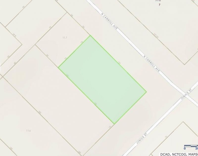 This lot can be purchased by itself or with a suite of others. 4411 Junius Street, 801 N Carroll as well as a historic home located at 713 N Carroll. Each of these properties are listed seperately in MLS. If all for parcels are purchased together the owner would have .75 acres of land. Current owner does not have a survey. New survey at buyers expense