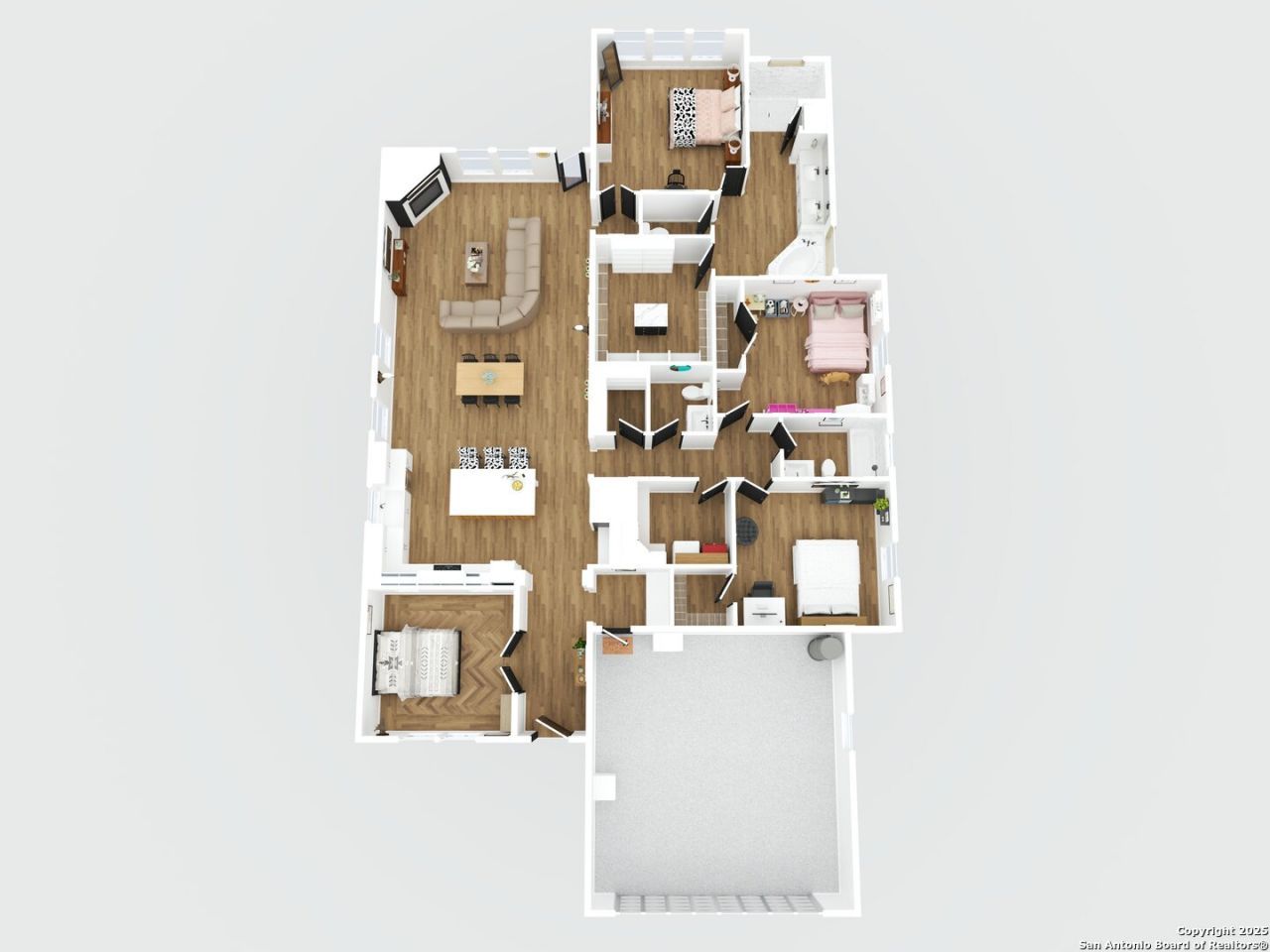 Welcome to your Hill Country retreat, where modern comfort meets resort-style living in the heart of Bandera, Texas, famously known as "The Cowboy Capital of the World." This stunning home sits on the Flying L Ranch Resort and Golf Course, offering not just a place to live but a lifestyle that blends the charm of Texas hospitality with the ease of everyday luxury. From the moment you arrive, the stone exterior sets the tone with timeless elegance. Step inside to find hardwood-look tile flooring that stretches throughout the home, bringing warmth and durability with none of the upkeep of carpet. The living room is anchored by a beautiful fireplace, the perfect spot to gather on cool evenings as flames flicker and laughter fills the air. The kitchen is a dream for both the seasoned cook and the takeout enthusiast. Crisp white cabinets, sleek quartz countertops, and a spacious layout invite everything from quiet morning coffee rituals to lively weekend brunches with friends. As the sunlight streams through the windows, you can already imagine the rhythm of daily life unfolding here. The spa-inspired primary suite feels like a personal retreat at the end of each day. Pamper yourself in the oversized shower or soak away stress in the deep garden tub. A huge walk-in closet ensures space for every season and occasion, making getting ready each morning a pleasure instead of a chore. Step outside to find your own private sanctuary. With no rear neighbor, youll enjoy uninterrupted golf course views framed by majestic Texas hills. A covered patio opens to an extended deck and dedicated fireplace area, perfect for evening conversations under the stars or weekend barbecues while watching golfers in the distance. The expanded driveway offers space for RVs and boats, while the fenced backyard keeps pets and children safe as they explore. Life at Flying L Ranch is about more than the home. This is about the community and amenities that make every day feel like a vacation. Tee off on the golf course surrounded by breathtaking scenery, cool off at the resort-style pool thats open year-round, or enjoy an afternoon match of basketball, tennis, sand volleyball, or pickleball. Kids will love the playgrounds while adults can relax by the campfire. For quieter moments, head Creekside along the San Julian River for fishing and reflection, or gather friends for a round of western-themed miniature golf. This home is more than a property. It is a chance to live where neighbors become friends, where weekends are filled with recreation and relaxation, and where every sunset reminds you why you chose the Texas Hill Country.