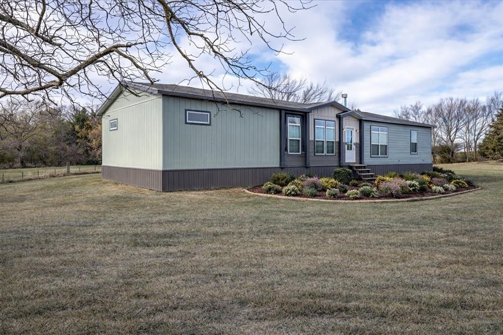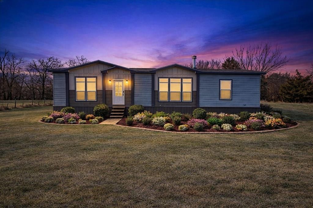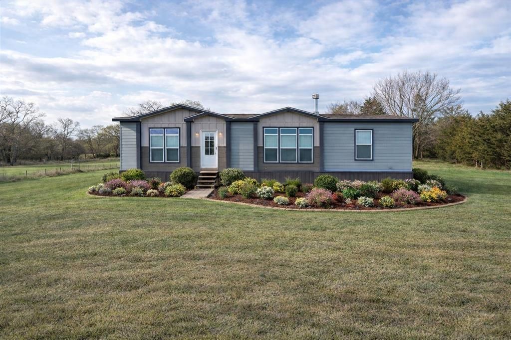 Like new 2023 manufactured home on 11.5 acres in Sadler, Texas, offering modern comfort with true country living. This 3 bedroom, 2 bathroom home with a split floor plan sits on ag exempt land with pipe fencing and cattle fencing, ready for horses, cows, or livestock. The open living area features a cozy wood-burning fireplace and flows into a stylish kitchen with granite countertops and stainless steel appliances. A large laundry room with a barn door adds both function and charm, and the washer, dryer, and refrigerator are included. The private primary suite offers a spacious bathroom with a large walk in shower, creating a relaxing retreat. The split bedroom layout provides added privacy for family or guests. Outside, enjoy wide open pasture, fencing already in place, 50 amp RV service, and plenty of room to build, ride, or roam. This property is ideal for those seeking a North Texas ranch style property or a peaceful rural lifestyle. Conveniently located between Gainesville and Sherman and just minutes from Lake Texoma, this home offers the perfect balance of privacy, accessibility, and recreation.
