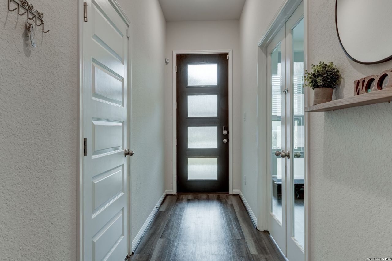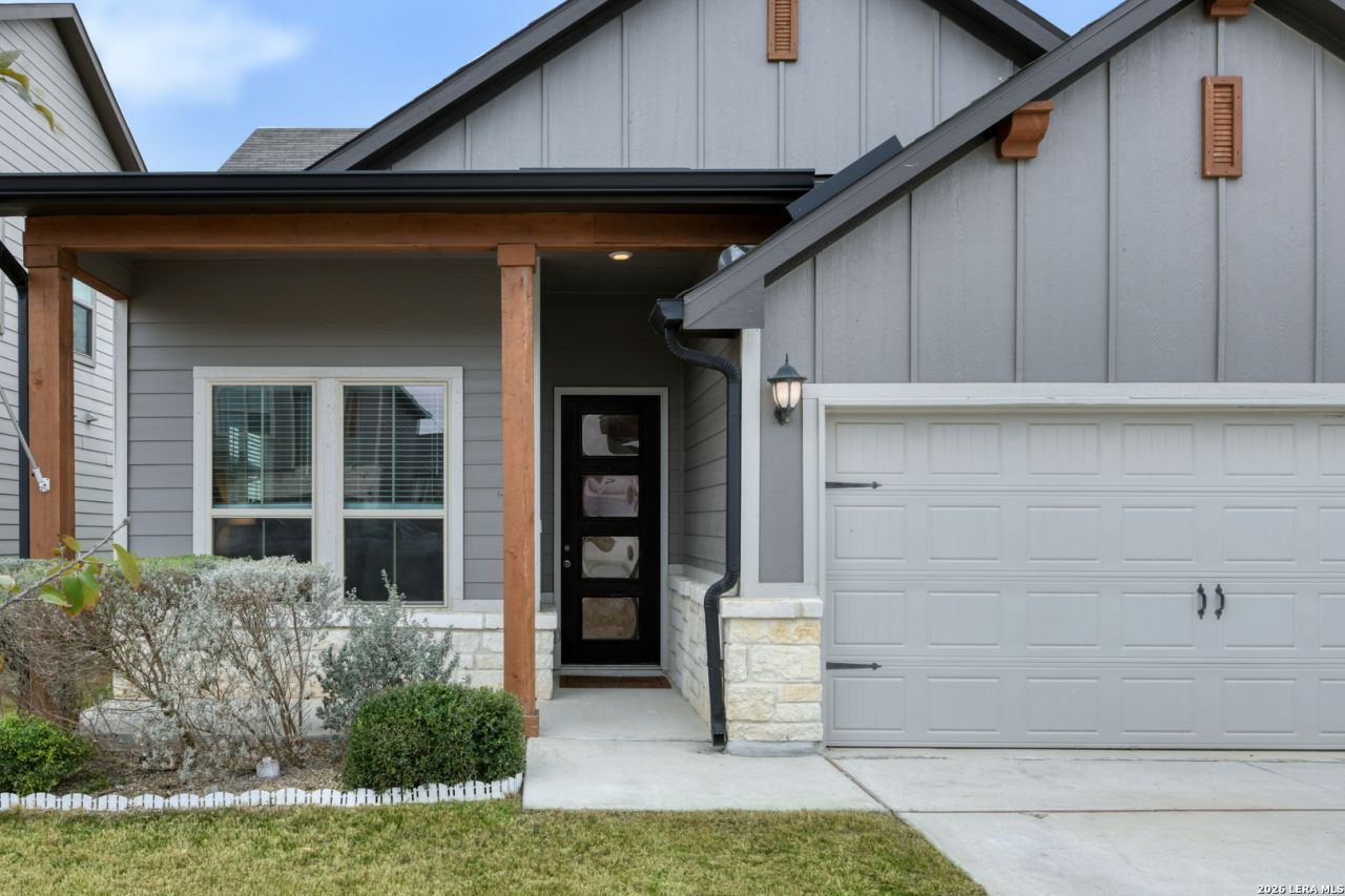 Stunning Meritage home blends modern design with everyday efficiency, showing like brand new from the moment you walk in. This thoughtfully designed 3-bedroom, 2-bathroom home features a flowing open floor plan. The large private office offers ample space for a dedicated desk setup and exercise equipment, and with lightning-fast fiber internet already in place, it is ideal for todays work-from-home lifestyle. The spacious master suite is your personal retreat, complete with a luxurious ensuite boasting a large walk-in shower, soaking garden tub, and double vanities. The kitchen is a perfect blend of style and function, showcasing Capri Gray granite countertops, 42-inch Barret Stone-toned cabinets, gas cooking, and stainless steel appliances. Engineered vinyl plank flooring throughout the main living spaces delivers a clean, contemporary aesthetic that is as easy to maintain as it is beautiful. Built by Meritage Homes, this property features energy-efficient foam insulation that keeps the home quiet, comfortable, and affordable to maintain year-round. Located just minutes from Randolph AFB, Fort Sam Houston, and I-10, commuting is effortless. Coming home to a peaceful, quiet neighborhood makes the work-life balance complete. Dont miss your chance to own this move-in ready gem. Schedule a showing today!