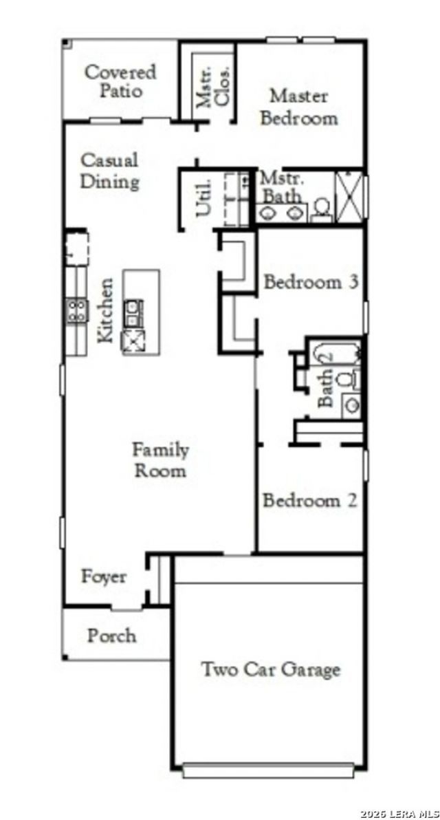 Welcome to the Frio floor plan-a stylish single-story home designed for modern living. Step into this bright, open layout featuring three bedrooms, two bathrooms, and a two-car garage, making it ideal for both everyday comfort and entertaining. Inside, the open-concept design seamlessly connects the living, kitchen, and casual dining areas. The kitchen is the heart of the home, showcasing a large island, gray cabinetry, subway tile backsplash, granite countertops, stainless steel appliances, and soaring 9-foot ceilings that enhance the spacious feel. Step outside to a covered patio, perfect for relaxing or unwinding. The expansive primary suite offers a walk-in closet and a well-appointed bathroom with an oversized shower, creating a private retreat. Dont miss your opportunity to tour this beautiful home on a corner homesite-schedule your visit today!