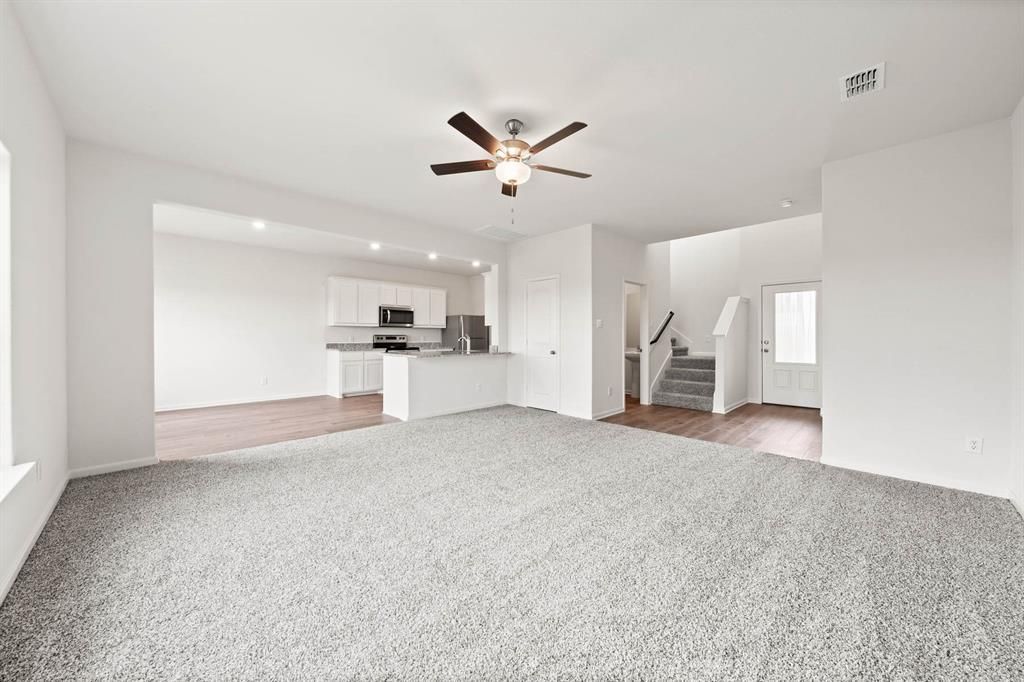 This thoughtfully designed home offers a seamless open-concept layout that’s perfect for modern family living, with the kitchen beautifully situated between the living and dining areas. The heart of the home is the spacious family room, complete with vaulted ceilings that enhance its welcoming atmosphere—a feature shown to boost appeal and value. The kitchen shines with a highly coveted island topped in granite countertops and complemented by beautiful wood cabinetry—granite remains one of the most sought-after upgrades in listings. Adjacent, a versatile flex room gives you the flexibility to use it as a home office, game room, or cozy media space. Step outside to the covered back patio and fully fenced yard—an ideal play area for kids and pets, just the kind of family-friendly backyard buyers love. Thoughtful extras abound, from professionally landscaped front yards and walk-in closets in every bedroom to a two-car garage equipped with a Wi-Fi-enabled opener. Conveniently located right off Hwy 69, this home offers easy access to dining, shopping, and key employers—offering both style and practicality in one exceptional package.