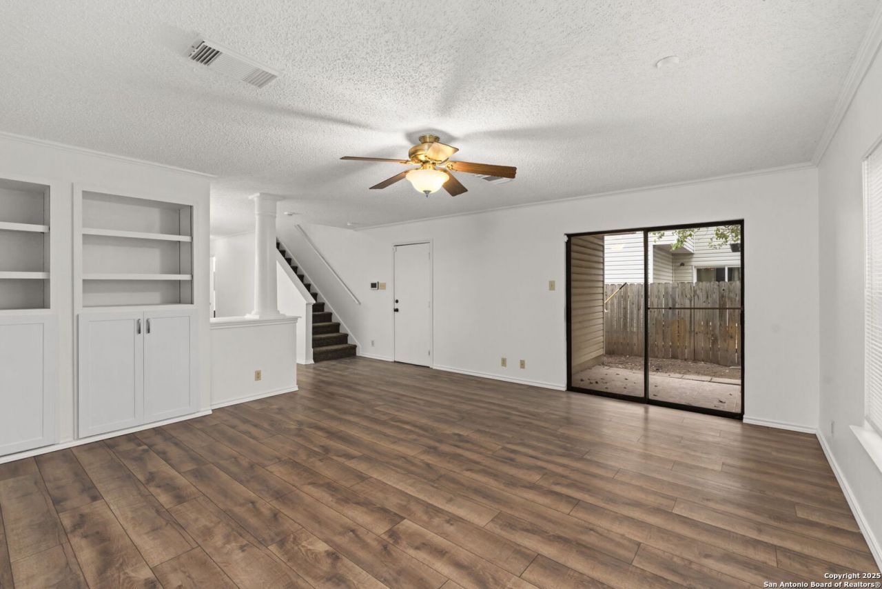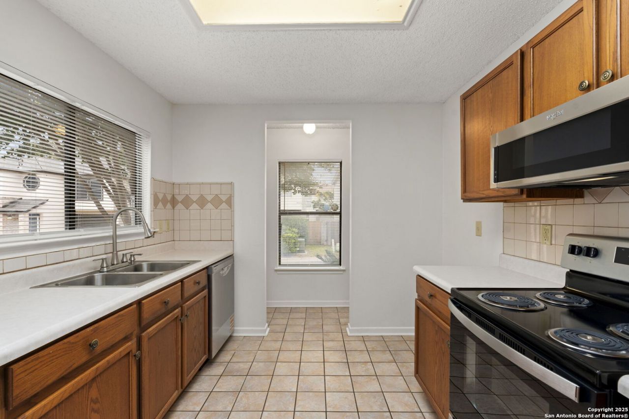 located near USAA , UTSA & the Medical Center with quick access to 410, I-10. This inviting 3 bedroom, 2.5 bathroom home features a spacious living area filled with natural light from a large window that opens to the backyard, creating a warm and welcoming atmosphere. A quaint dining area with another large window leads into the kitchen, offering a comfortable flow for daily living. Upstairs, a second living area provides flexible space for relaxing or working from home, while the large primary bedroom includes an attached bathroom for added convenience. Cozy secondary bedrooms offer comfort for family or guests, and a covered patio in the backyard provides the perfect spot for outdoor enjoyment.