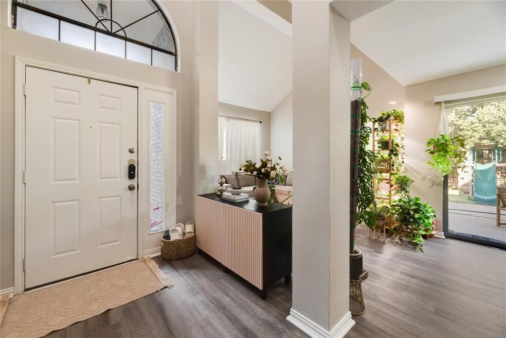 Immediate move-in! This spacious two-story home in Duncanville offers approximately 2,334 sq ft on a generous 0.46-acre lot. Featuring 3 bedrooms, including two primary suites, 3 full baths and 1 half bath, this flexible layout is ideal for multi-generational living or added privacy. Vaulted ceilings welcome you into the foyer and living areas, creating an open, airy feel. The cozy fireplace anchors the living room, perfect for relaxing evenings. The open-concept design connects the living, dining, and kitchen areas. The kitchen showcases modern white cabinetry and granite-style countertops, with coordinating finishes in the bathrooms. The main primary suite offers a spa-like bath and large walk-in closet, while the upstairs suite includes its own private bath and walk-in closet. Luxury vinyl plank flooring adds style and durability. Enjoy a fully fenced, landscaped backyard with mature trees and space to unwind. Attached 2-car garage.