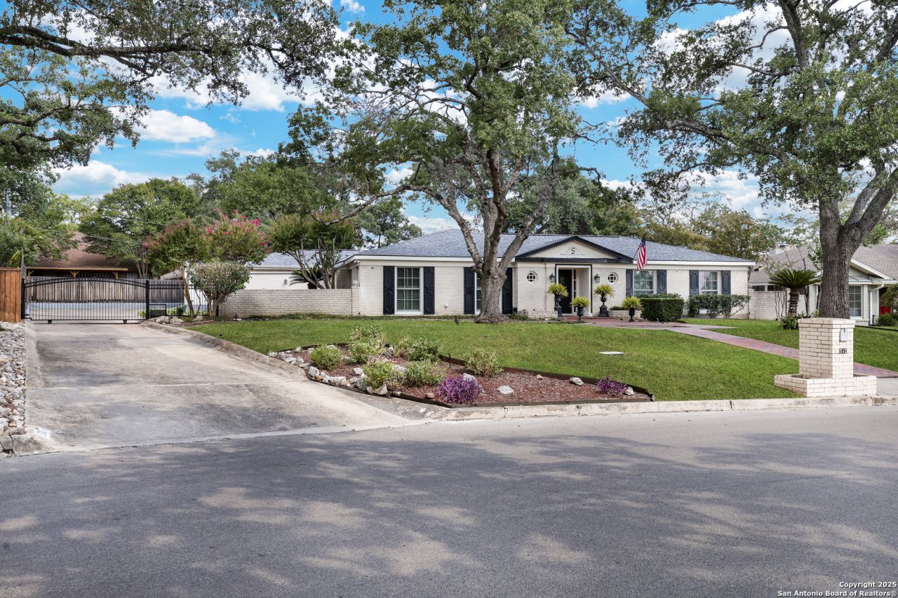 This private, one-story three-bedroom, three-and-a-half-bathroom home nestled in the heart of central San Antonio offers a tranquil and luxurious living experience. A wrought iron automatic gate welcomes you to a spacious driveway. The recently renovated French country-style kitchen features all-new appliances, while a formal dining room and separate sitting room with a fireplace exude elegance. The large living room, bathed in natural light from its wall of windows, opens up to the serene backyard. Set the ambiance with multicolored LED tree uplighting. The gated pool and hot tub also feature multicolored LED lights that can be controlled through the Pentair Pool App. Your backyard will remain lush and green with the updated rain machine sprinkler system. Surrounded by mature trees and a bamboo wall, youll find seclusion and peace. A detached living space in the backyard features a bedroom, a full bathroom, and new forever deck, making it ideal for guests or a work-from-home office. Inside the home, the bedroom wing boasts a spacious master bedroom with a large bathroom and a walk-in closet. Dont miss out on this turn-key ready home in this quiet neighborhood!