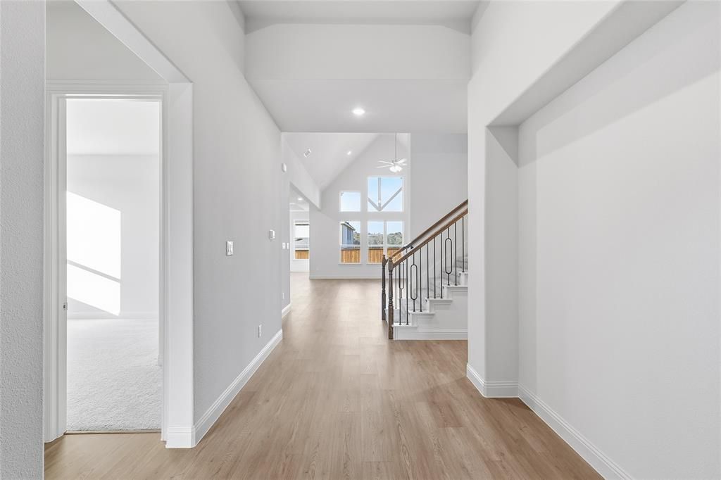This stunning two-story DRB Home showcases the award-winning Princeton floor plan, delivering an impressive 2,996 square feet of meticulously designed living space. From the moment you enter, you're captivated by elegant wood flooring that flows throughout the main living areas and soaring cathedral ceilings that add visual impact to the expansive great room. A wall of windows fills the space with natural light, creating a warm, inviting atmosphere while offering picturesque views of the outdoors. The adjacent casual dining area shares this abundance of sunlight, making every meal feel bright and cheerful. Featuring an oversized island with ample seating, upgraded cabinetry, striking granite countertops, and a modern tile backsplash, this kitchen is as stylish as it is functional. The open-concept layout ensures you're always connected to the action. The primary suite is thoughtfully positioned at the rear of the home for enhanced privacy, offering a serene escape. This peaceful retreat features a luxurious en-suite bath with a large shower, a drop-in soaking tub, and an expansive closet. Two additional secondary bedrooms are located downstairs and share a well-appointed full bathroom, ideal for accommodating children or guests. Upstairs, you’ll discover another generously sized secondary bedroom and full bathroom, along with a spacious game room that offers endless possibilities. With easy access to both I-20 and I-30, commuting to Fort Worth's city center is a breeze, making it an ideal location for professionals and families alike. Rio Vista at Kelly Ranch is a short drive down Highway 377 to Benbrook Lake, perfect for those seeking water activities like fishing, boating, and scenic views. For shopping needs, the Shops at Willow Park offers an array of boutiques, restaurants, and entertainment options. Nature lovers will enjoy nearby South Holiday Park Campground, ideal for picnics, hiking, and outdoor recreation.