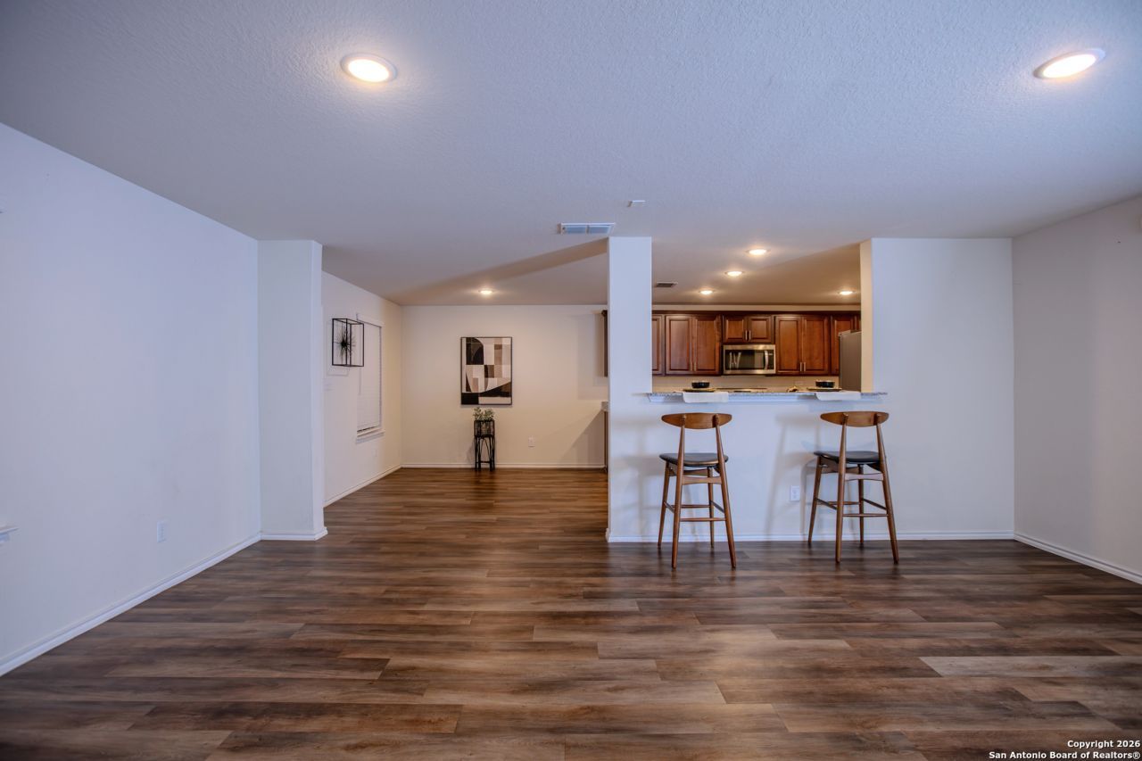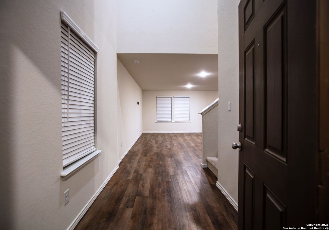 Dont miss this gorgeous, well-kept 3-bedroom, 2.5-bath, featuring an open concept floor plan, spacious kitchen with abundant cabinet space, beautiful granite countertops and blinds throughout. This home comes complete with stainless-steel appliances, including a refrigerator, washer/dryer, self-cleaning oven, and dishwasher. All bedrooms offer generous closet space. Enjoy the large backyard from the covered patio. Perfect for entertaining, privacy fence and no rear neighbors. The two-car garage includes a remote-controlled opener. Conveniently located with quick access to Fort Sam Houston, Randolph AFB, I-10, I-35, & Loop 1604. This move-in-ready home is thoughtfully designed & ready for you to make it your home.