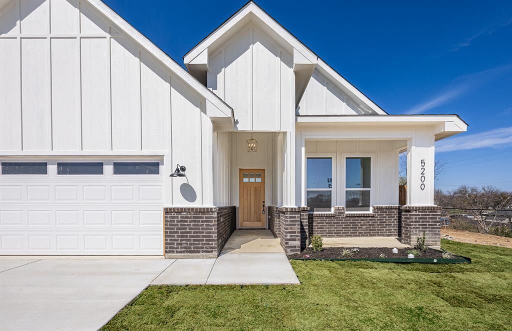 Beautiful 2026 New construction home featuring 4 bedroom and 2 full bathrooms with a modern farmhouse design and thoughtfully selected brick finishes throughout. This spacious open-concept floor plan offers abundant natural light, high ceilings, and elegant modern fixtures that create a warm and inviting atmosphere. The main living area showcases a dramatic vaulted ceiling with a designer chandelier, seamlessly flowing into the kitchen and dining space perfect for entertaining. The kitchen features quartz countertops, a large island with seating, custom cabinetry, stainless steel appliances, stylish pendant lighting, and a walk in pantry. The primary suite offers a relaxing retreat with vaulted ceilings, large windows, and a spa inspired bathroom complete with a walk in glass shower, modern fixtures, and designer tile finishes. Secondary bedrooms are generously sized and ideal for guests, family, or a home office.Additional highlights include luxury vinyl plank flooring, recessed lighting, custom mud bench storage, and a two car garage. The home sits on a spacious lot with a fully fenced backyard and covered patio, perfect for outdoor gatherings. Conveniently located near downtown Fort Worth, major highways, dining, and shopping, this home offers both modern comfort and accessibility
